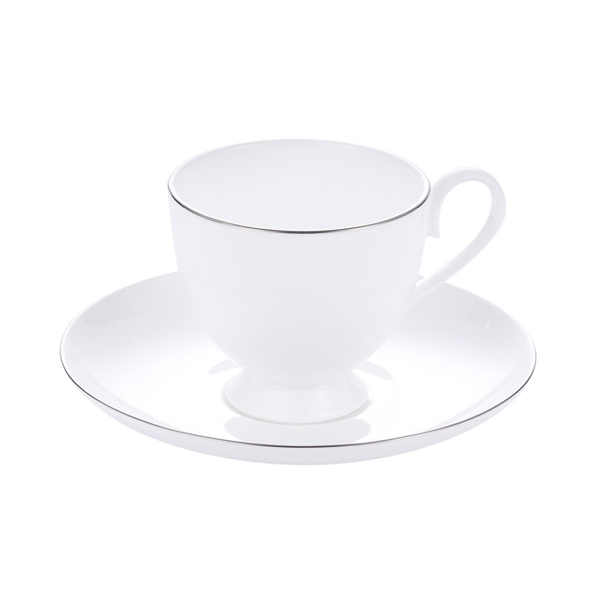 Сервиз чайный GIPFEL ELEGANZA 40718 на 4 персоны, 11 предметов. Чайник заварочный, 1450мл, 1шт., Сахарница, 400мл, 1шт., Молочник, 330мл, 1шт., Чашка, 230мл, 4шт., Блюдце 15см, 4шт. Цвет: белый с ободком серебристого цвета. Материал: костяной фарфор.