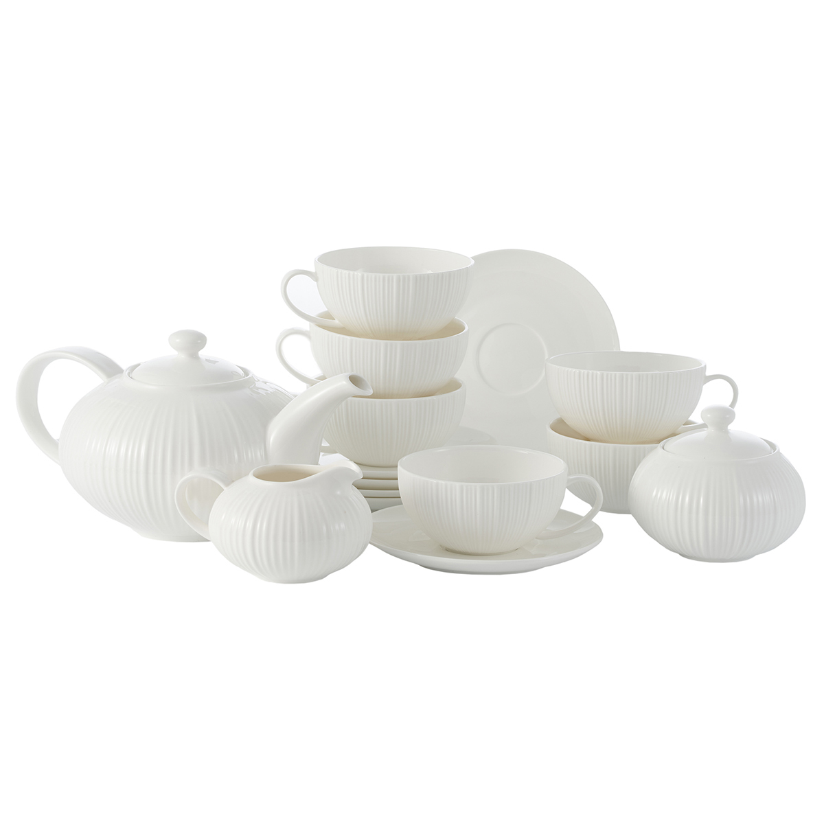 Сервиз чайный Gipfel Elegia 43463 15 предметов: чайник заварочный 800 мл, сахарница 250 мл, молочник 170 мл, чашка 120 мл (6 шт.), блюдце 15 см (6 шт.). Материал: костяной фарфор. Цвет: белый