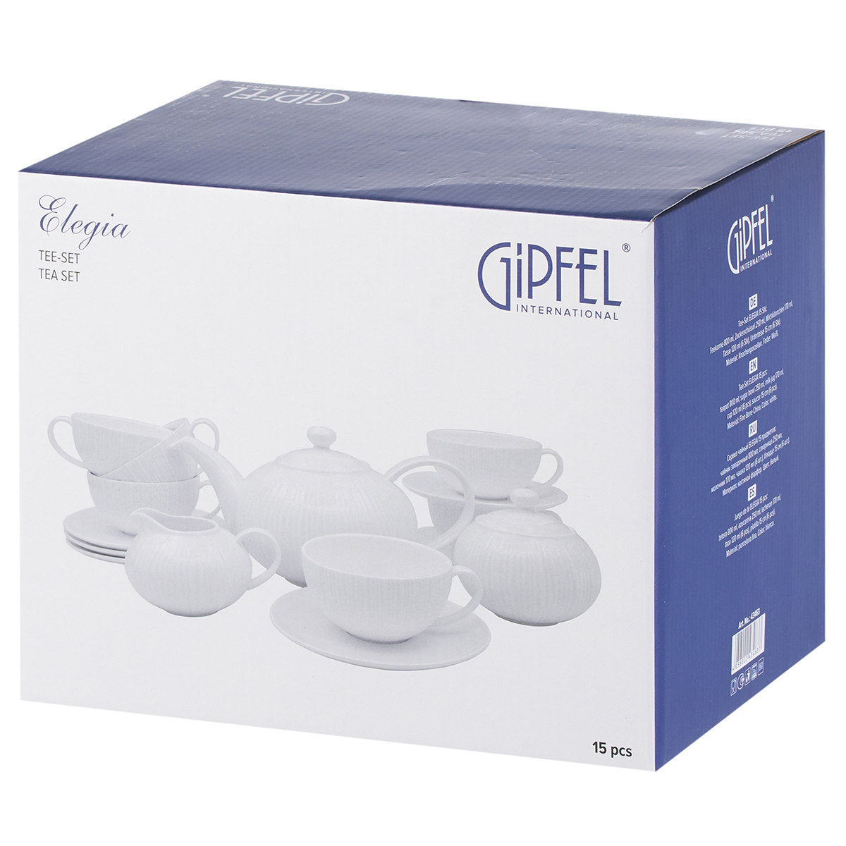 Сервиз чайный Gipfel Elegia 43463 15 предметов: чайник заварочный 800 мл, сахарница 250 мл, молочник 170 мл, чашка 120 мл (6 шт.), блюдце 15 см (6 шт.).