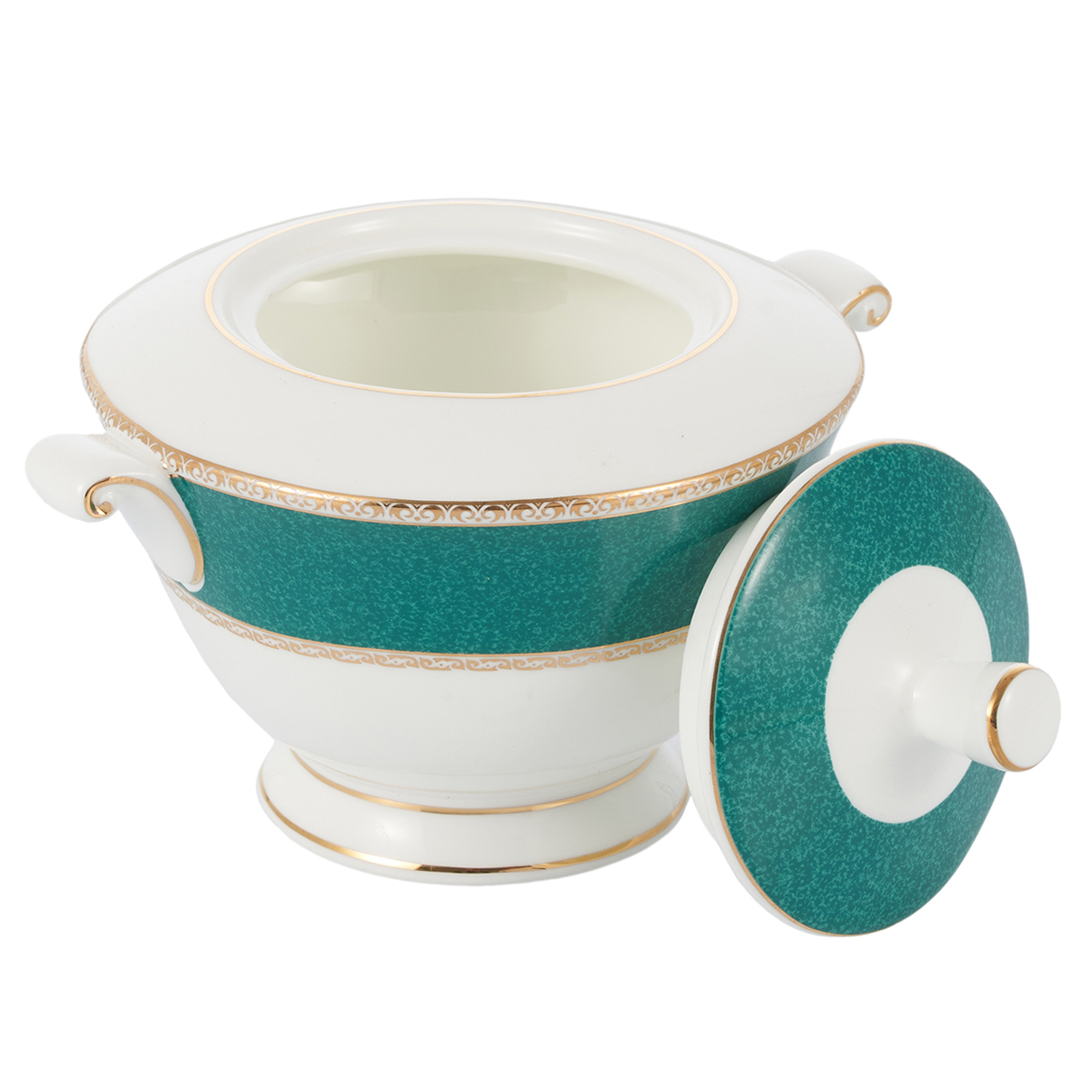 Фарфоровая посуда – это, прежде всего, эстетическое наслаждение. Ее гладкая поверхность и стильный дизайн создают великолепное визуальное впечатление. Каждая деталь фарфорового сервиза Gipfel Moritz тщательно продумана. Декор посуды выполнен в византийском стиле: белоснежную поверхность изделий украшает ленточный орнамент насыщенного бирюзового цвета. Золотистый ажурный кант дополняет композицию. Утонченные формы, элегантный декор, изумительный цвет и глянцевая поверхность делают посуду коллекции Gipfel Moritz великолепным украшением стола вне времени.