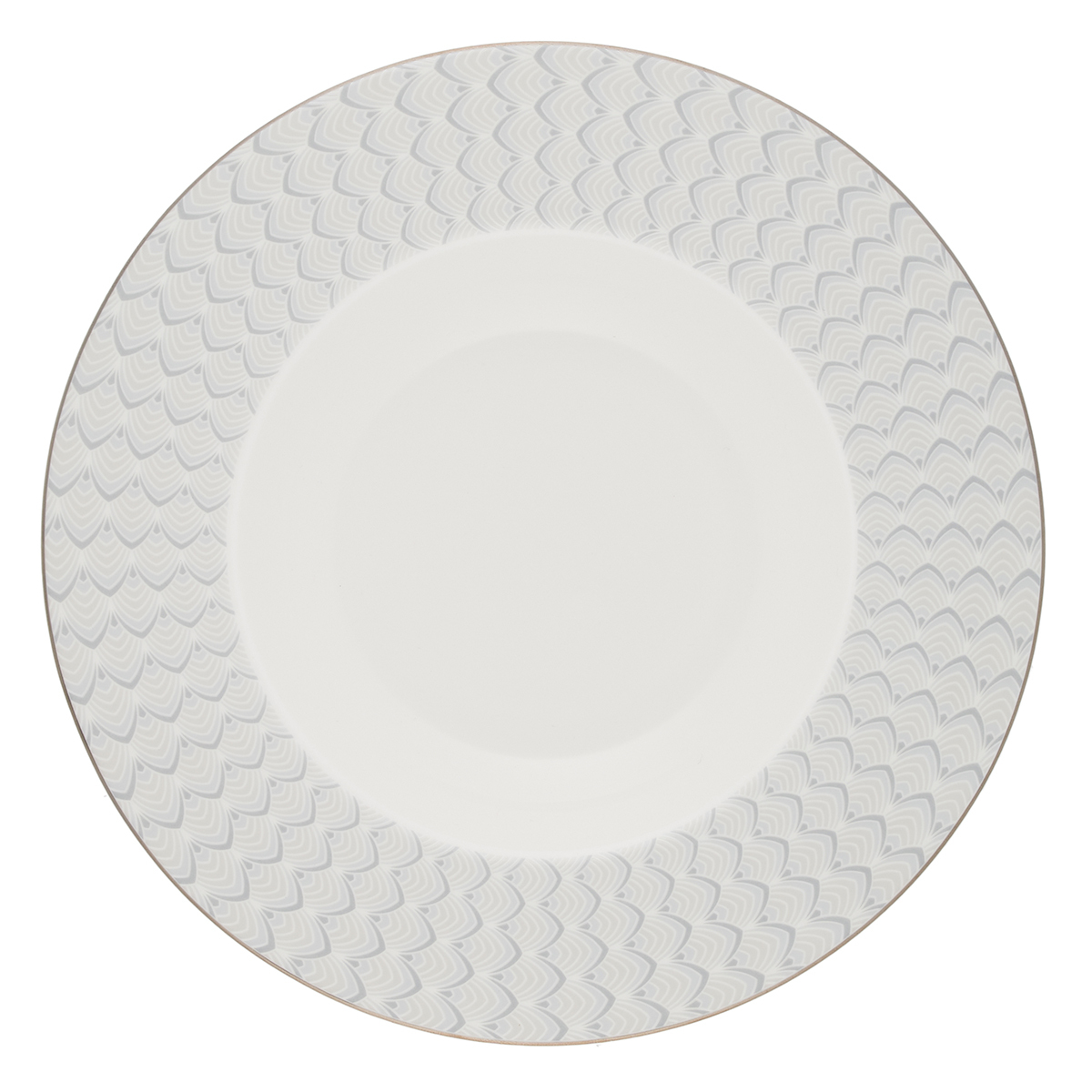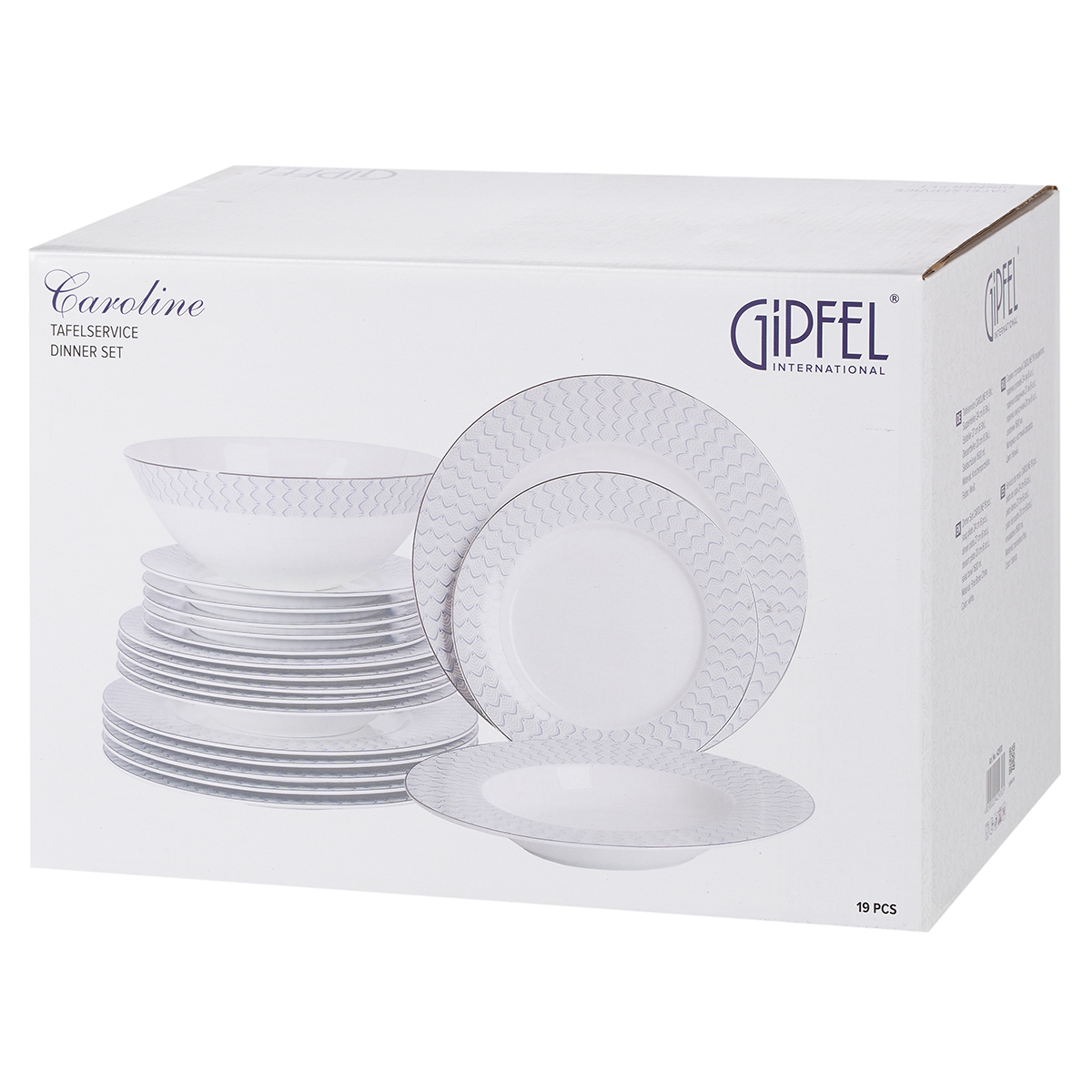 Сервиз Gipfel Caroline выполнен в классическом стиле: белоснежную поверхность украшает по бортику изящный рельефный геометрический орнамент в молочно-серых тонах. Серебристый кант по краю дополняет композицию. Утонченные формы, элегантный декор и глянцевая поверхность делают посуду коллекции Caroline великолепным украшением стола.