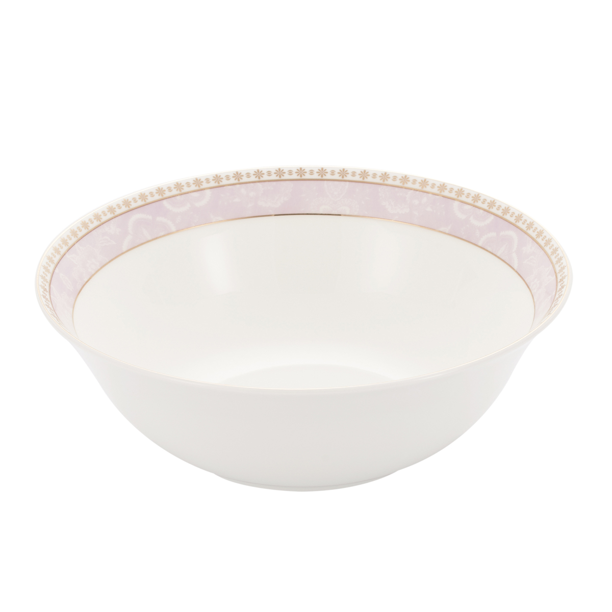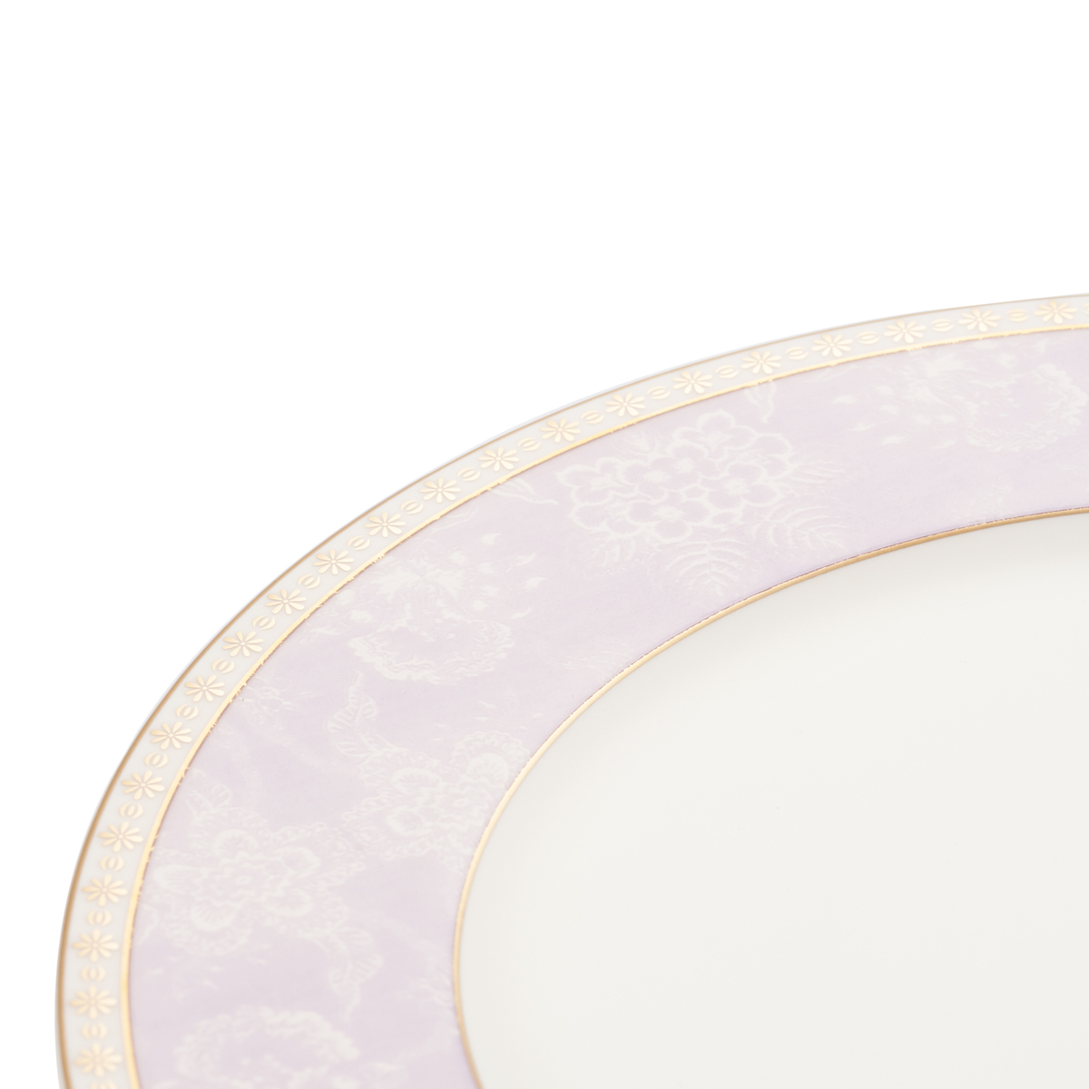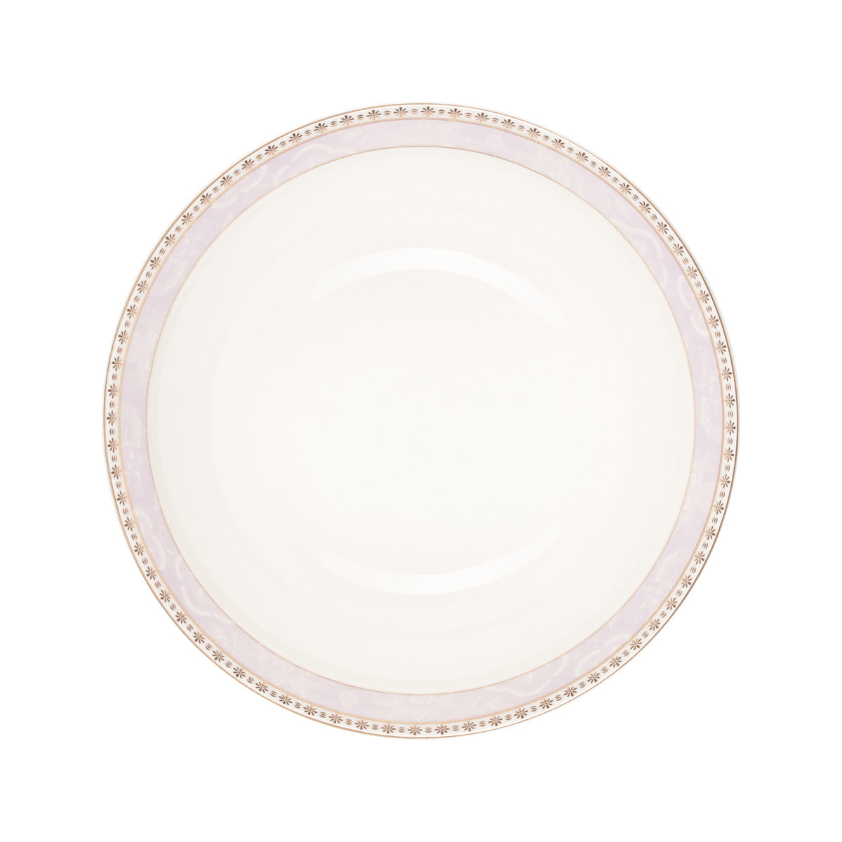 Сервиз столовый Gipfel LILLA 40979 на 6 персон, 19 предметов: тарелка обеденная 27 см, 6шт., тарелка закусочная, 23 см, 6шт, тарелка суповая, 23,5 см, 6шт. салатник, 24 см, 1шт. Цвет: белый с сиреневым кантом. Материал: премиальный фарфор.