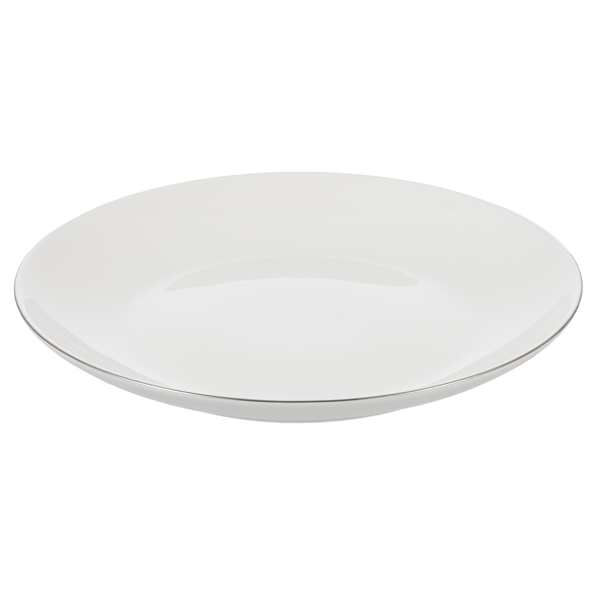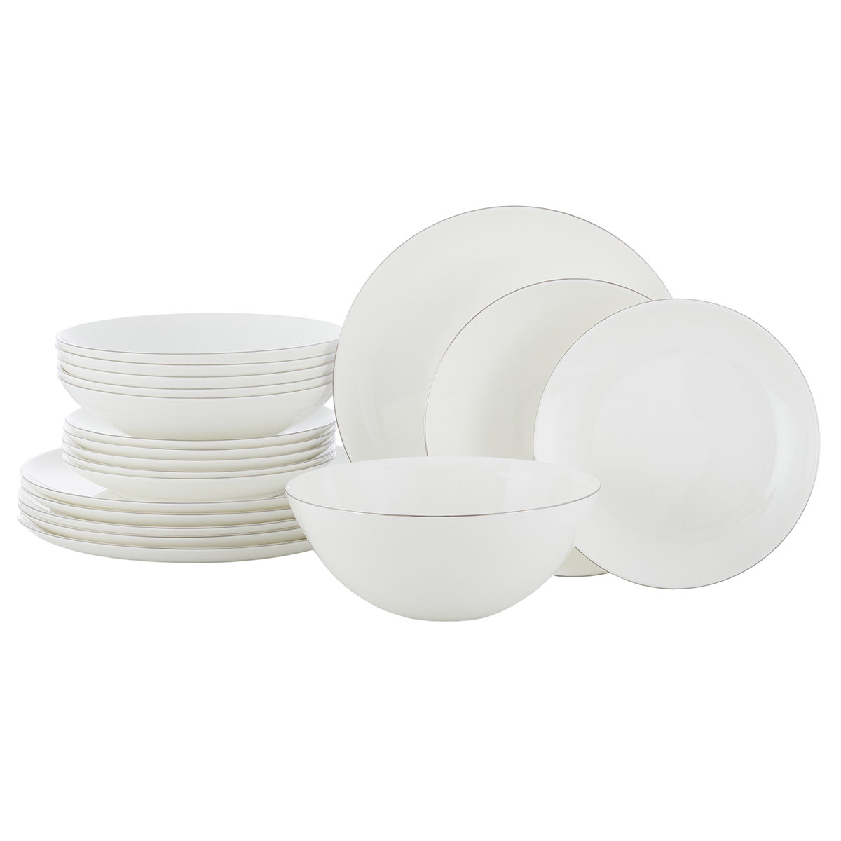 Сервиз столовый Gipfel Platinum 52635 19 предметов: тарелка обеденная 26 см (6 шт.), тарелка закусочная 20 см (6шт.), тарелка суповая 22 см (6 шт.), салатник 1600 мл. Материал: костяной фарфор. Цвет: белый с серебристым кантом.