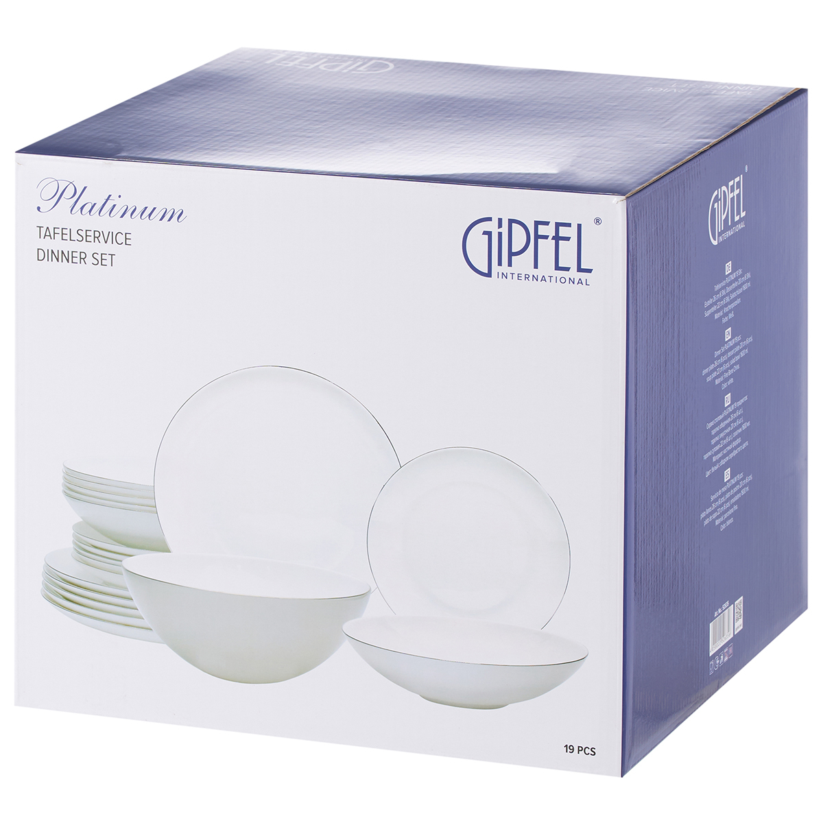 Сервиз столовый Gipfel Platinum 52635 19 предметов: тарелка обеденная 26 см (6 шт.), тарелка закусочная 20 см (6шт.), тарелка суповая 22 см (6 шт.), салатник 1600 мл.