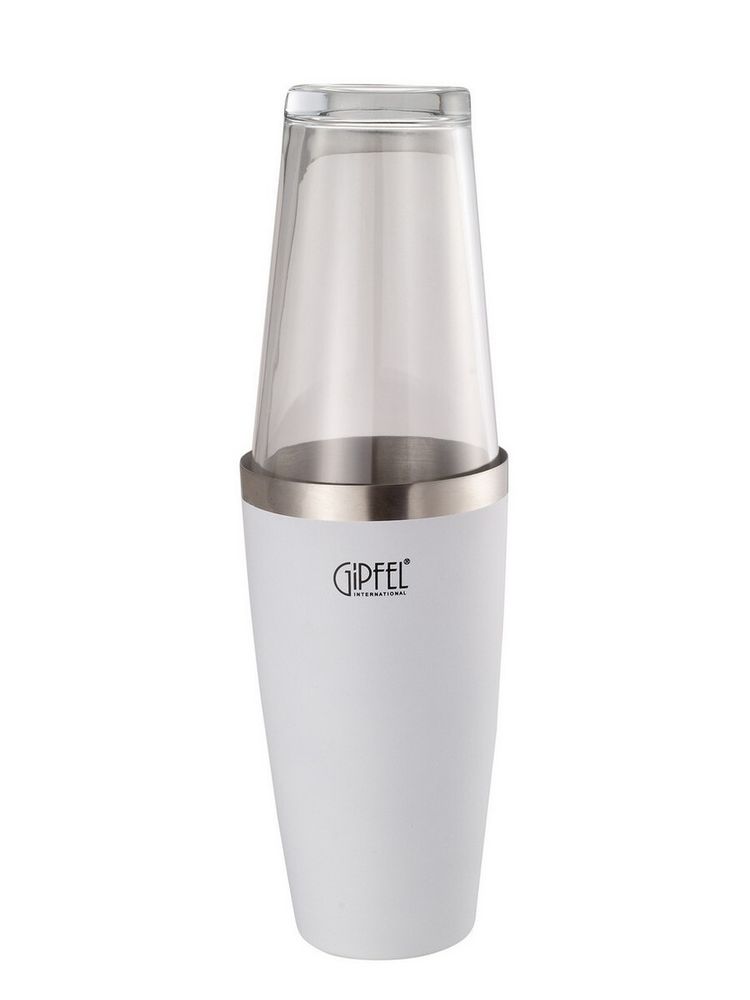 Шейкер для коктейлей является незаменимым помощником в приготовлении вкусных алкогольных и безалкогольных напитков со льдом. Конструкция состоит из двух стаканов, которые надеваются друг на друга. Верхний стакан выполнен из стекла, а нижний — из качественной нержавеющей стали. Материалы безопасны для здоровья, а сталь отличается повышенной прочностью и стойкостью к коррозии. Шейкер для коктейлей имеет объем на 750 мл и размеры 28×9 см. Изделие не предназначено для мытья в посудомоечной машине. Для чистки не следует применять абразивные средства.