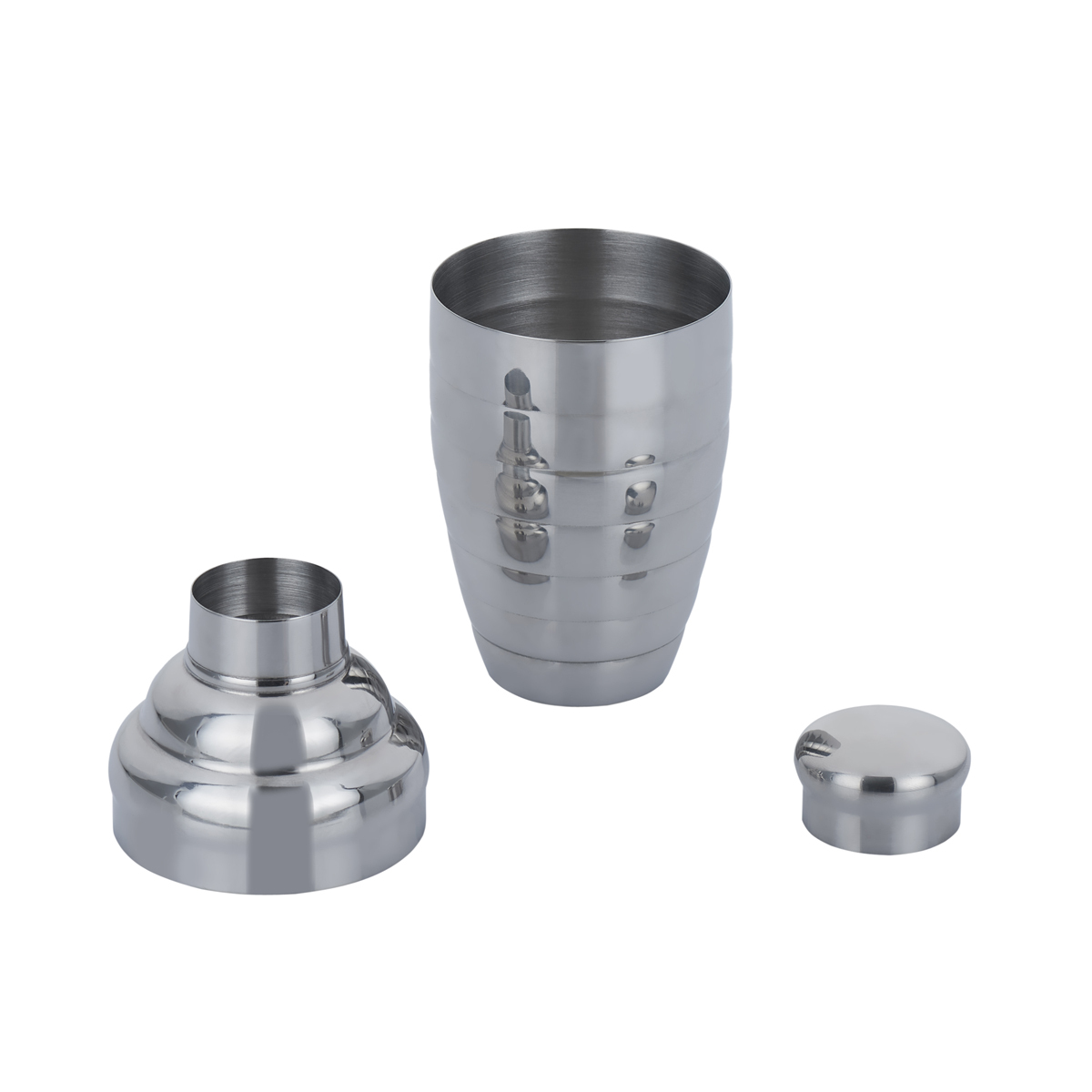 Металлический шейкер используется для приготовления коктейлей, состоящих из жидкостей разной плотности. В аксессуар помещается 500 мл жидкости. Размеры изделия 8×19 см. Шейкер изготовлен из прочной нержавеющей стали18/10, которая отличается хорошими качественными характеристиками. Материал не поддается коррозии, устойчив к окислению и является безопасным для здоровья человека. Изделие разрешается мыть в посудомоечной машине. Такой металлический шейкер можно использовать также для приготовления белково-протеиновых коктейлей и смесей, употребляемых спортсменами.