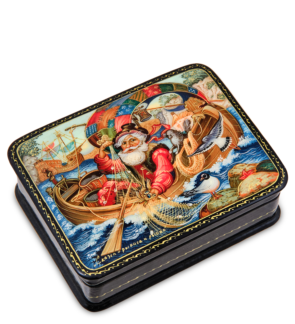 ШК-19/44 Шкатулка в технике декупаж «Сказка о рыбаке и рыбки» (10х8х3,5)