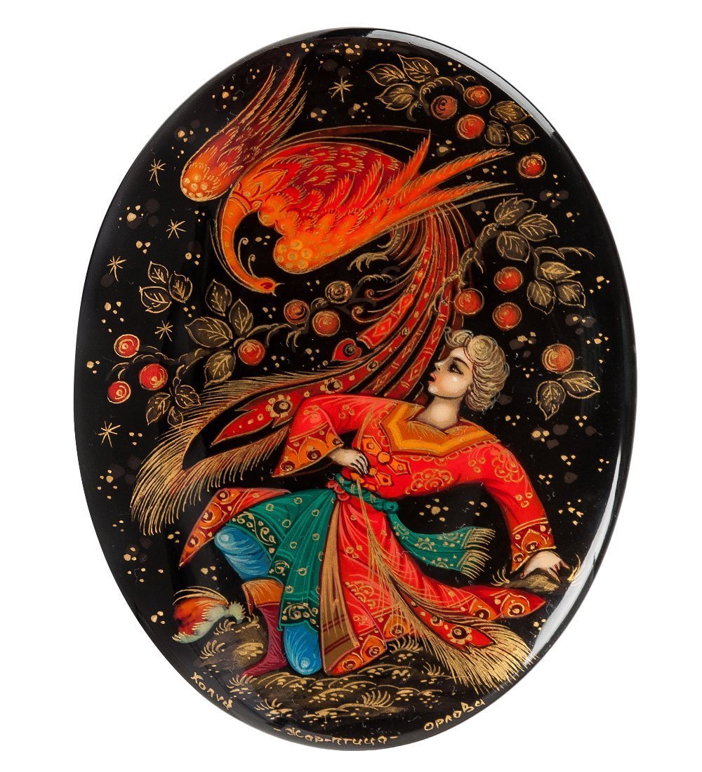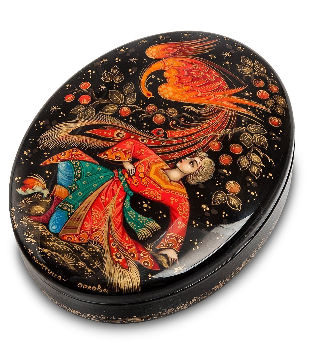 Овальная 13-сантиметровая шкатулка «Жар-птица» - настоящая жемчужина в многообразии шкатулок, предназначенных для женщин. В эту коробочку может поместиться много полезных вещей, а яркий рисунок на крышке позволит хозяйке украсить любую комнату квартиры или загородного дома.