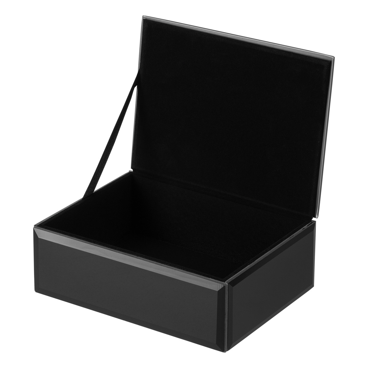 Шкатулка Gipfel Augusta 42877. Размер 16x12x6 см. Изготовлена из МДФ и стекла. Поверхность глянцевая черная стеклянная. На крышке украшение из натурального кофейного агата с золотой фольгированной окантовкой.