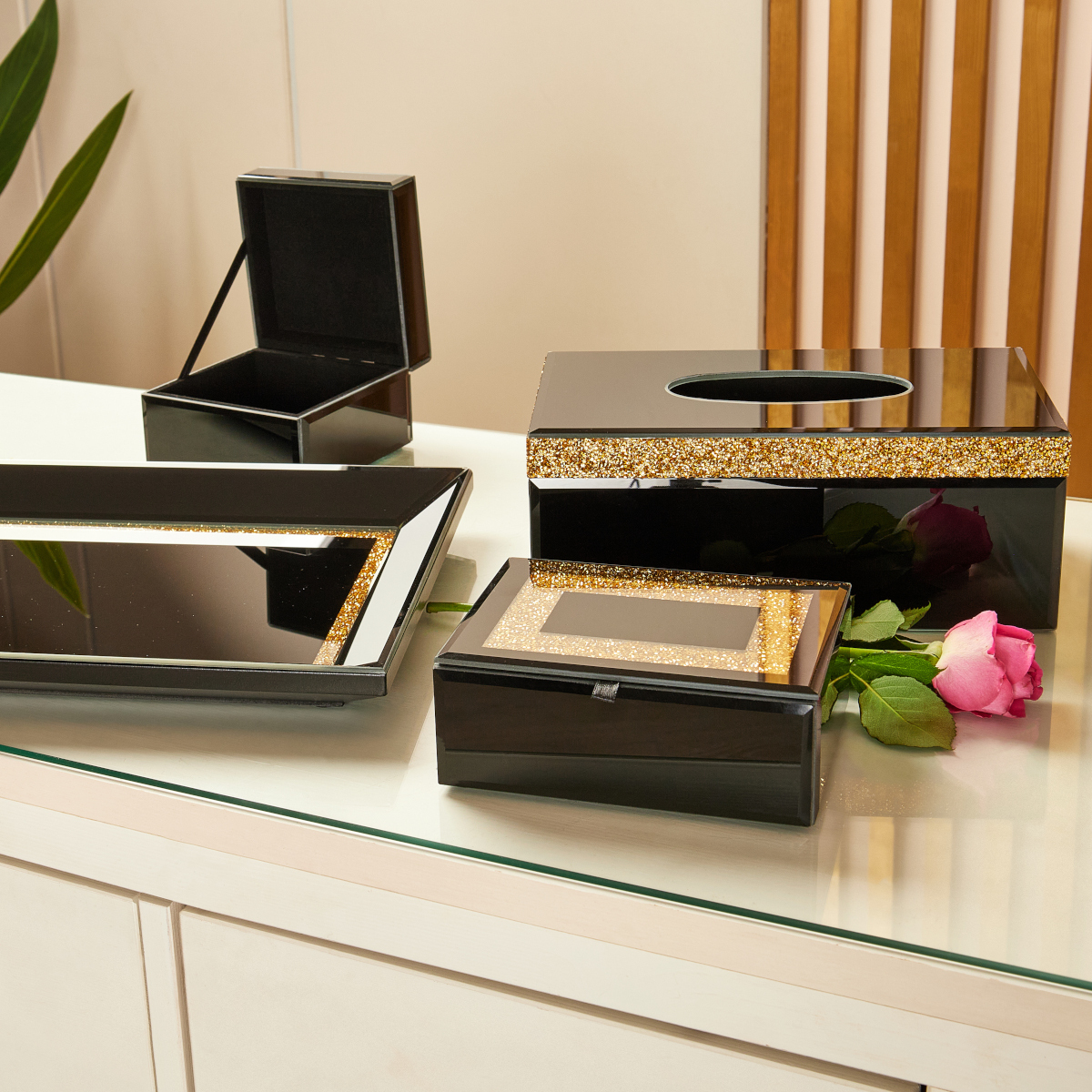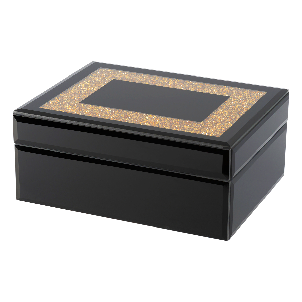 Шкатулка Gipfel Evora 42891. Размер 19x15x8 см. Изготовлена из МДФ и стекла. Поверхность глянцевая из черного стекла.