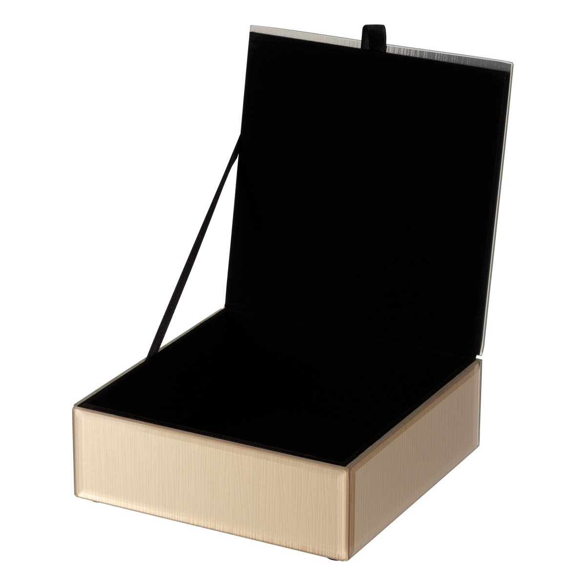 Шкатулка Gipfel Listone 42888. Размер 16x16x6 см. Изготовлена из МДФ и стекла. Поверхность стеклянная, корпус бежевого цвета с блестками. Внутренняя отделка черного цвета.