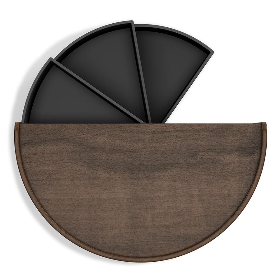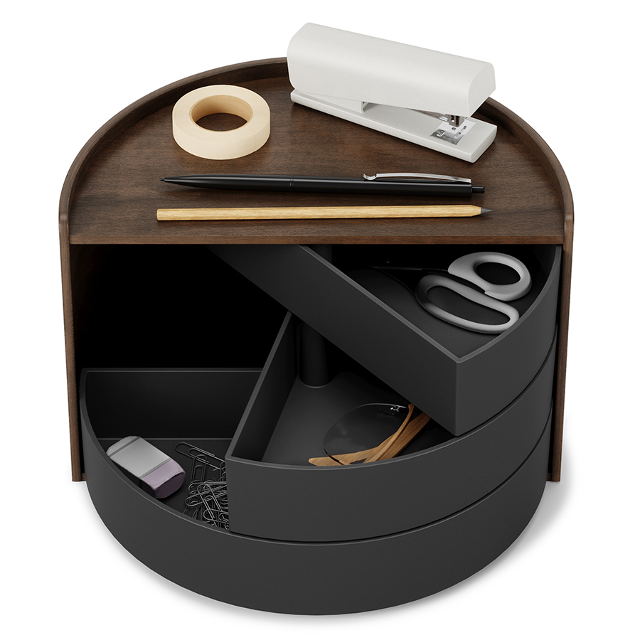 На верхнюю полку шкатулки можно ставить духи, держатели для колец или небольшие декоративные растения. Три вместительных ящика вращаются, обеспечивая легкий доступ к украшениям.
