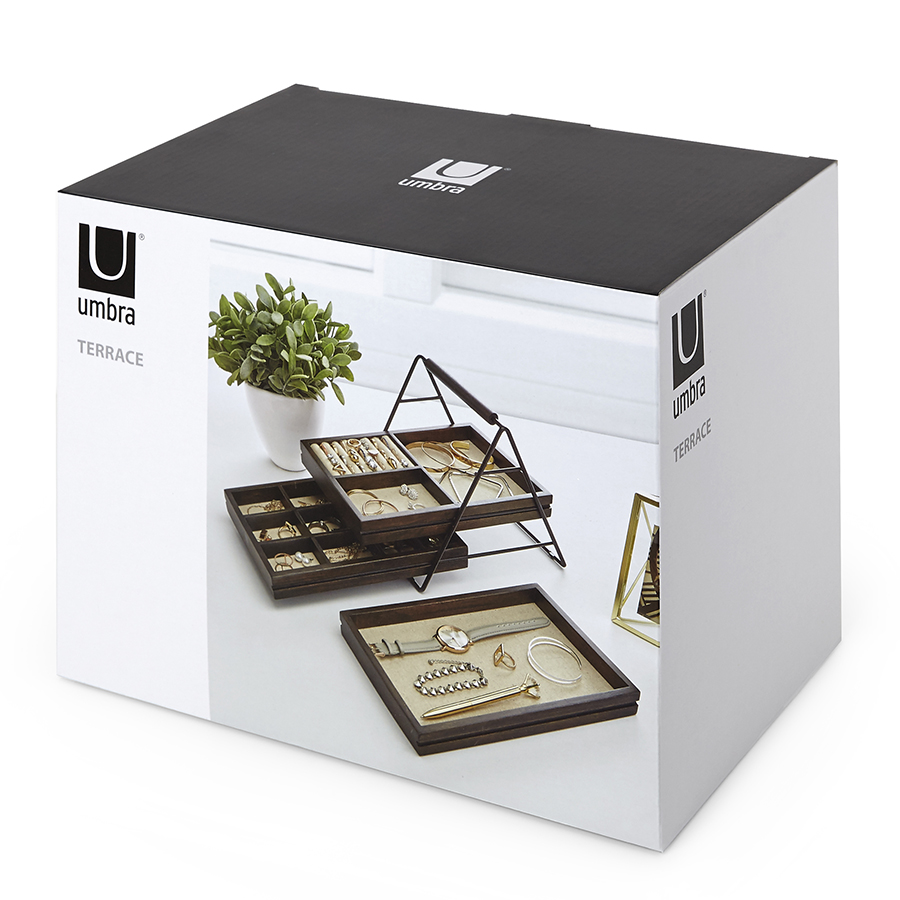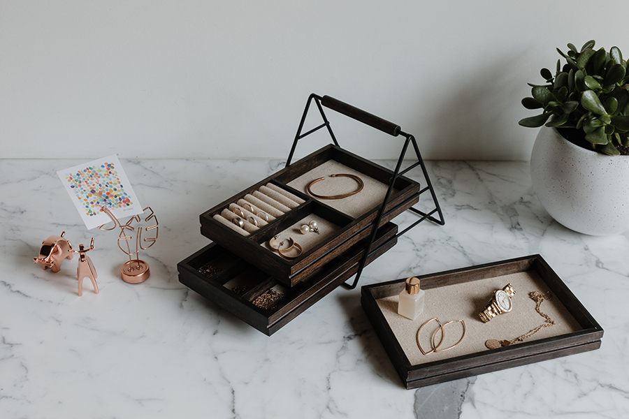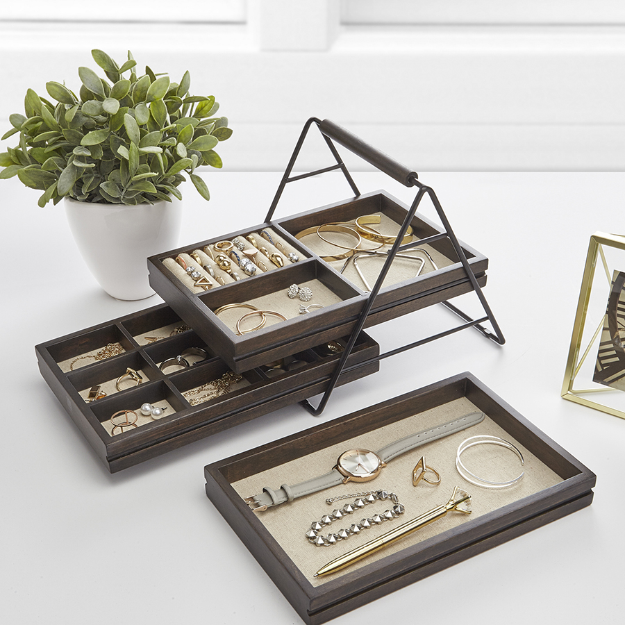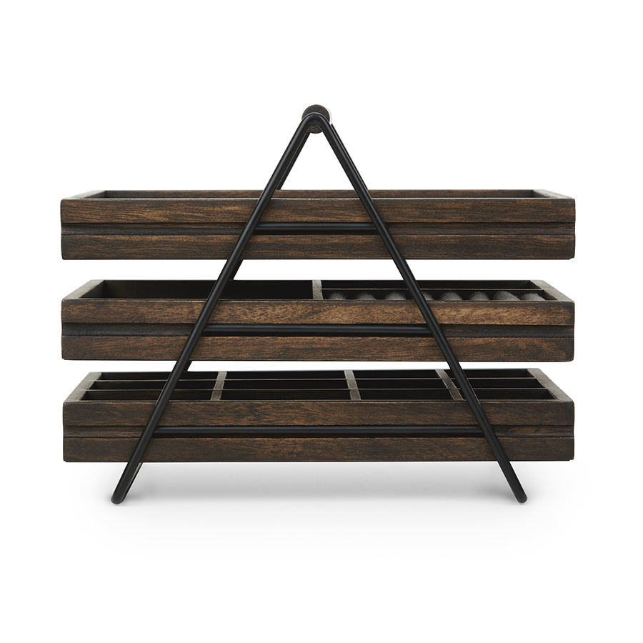 Деревянная многоярусная шкатулка позаботится о ваших украшениях. Благородное сочетание натурального темного дерева и металла с черным матовым покрытием делает шкатулку отличным подарком как для женщины, так и для мужчины.