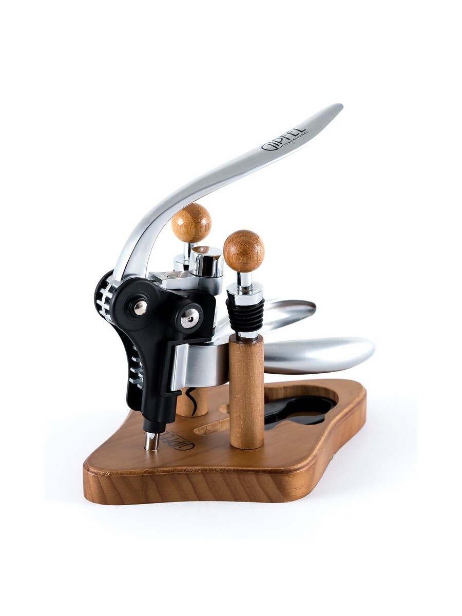 Штопор рычажный в наборе на деревянной подставке Gipfel 9625. Материал: сплав алюминия, сплав цинка, пластик, бук.