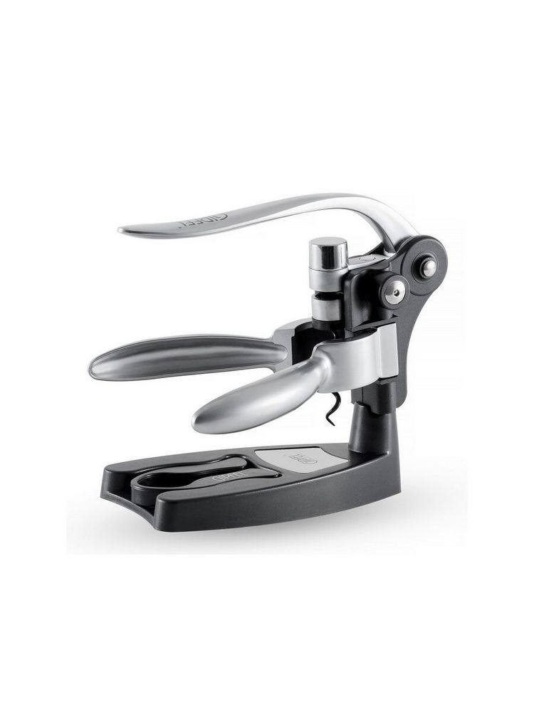 Штопор рычажный Gipfel 5445. Высота 14 см, ширина 19 см. Устройство используется для быстрого и удобного откупоривания бутылок из-под вина с синтетическими или натуральными пробками. Аксессуар оснащен специальным механизмом вращения, благодаря которому пробка извлекается из бутылки за считанные секунды.