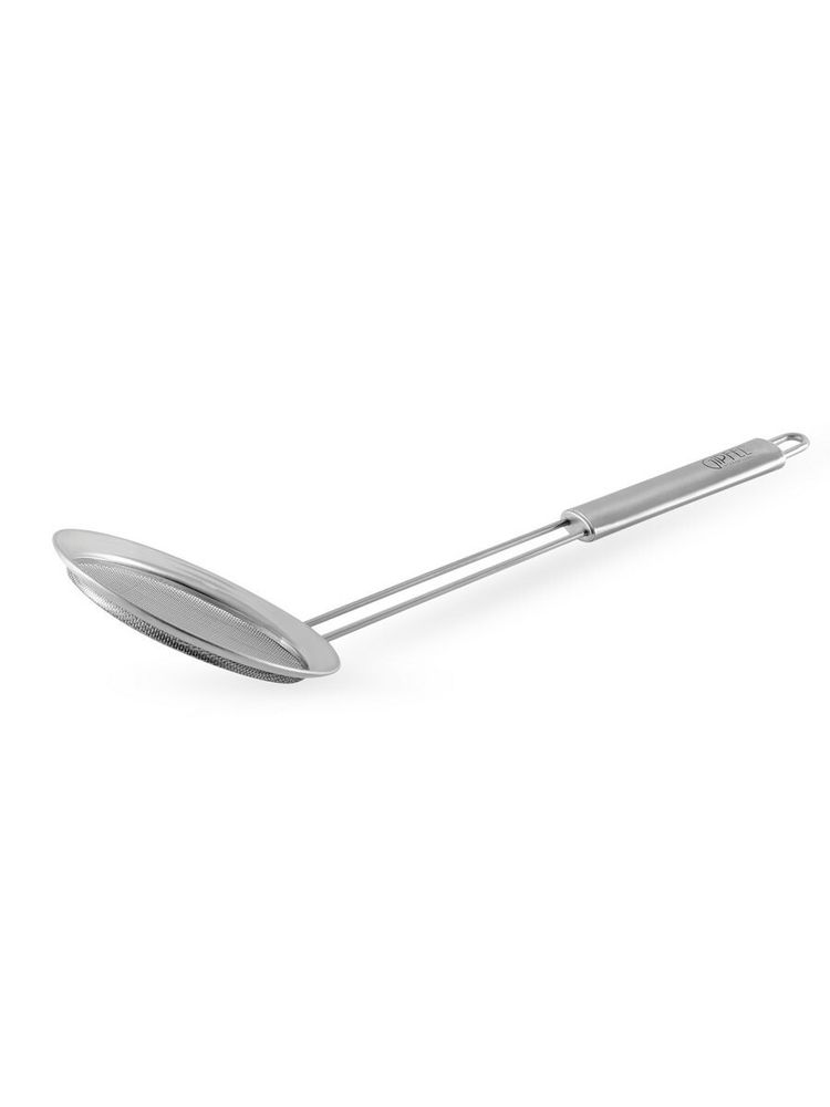 Шумовка Gipfel 5679. Диаметр 12 см. Шумовка очень удобна при приготовлении пельменей, макарон, креветок: за счет большого количества мелких дырочек, как у сита, вода быстро уходит. Ручка сделана из нержавеющей стали. На ручке имеется отверстие для подвешивания.