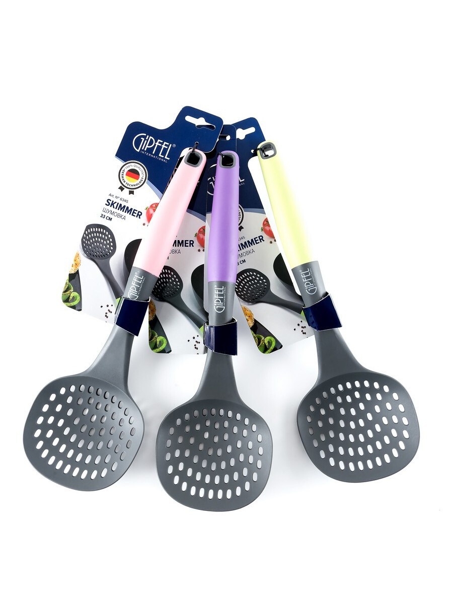 Шумовка GIPFEL 6345. Длина 33 см. Покрытие ручки "Soft-touch". Шумовка имеет пластиковую ручку с петлей для подвешивания. Рабочая поверхность из нейлона, что позволит использовать шумовку с антипригарной посудой.