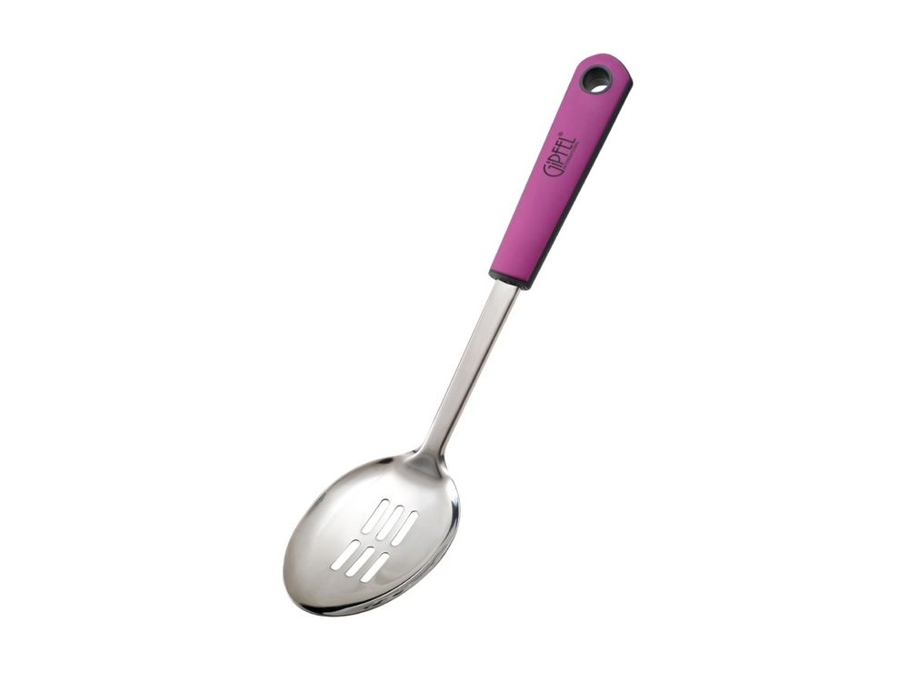 Шумовка Gipfel Omega 2055. Размер шумовки 33х7см. Ручка выполнена из фиолетового пластика, рабочая часть - из нержавеющей стали 18/0.