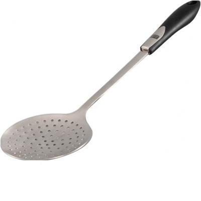 Шумовка — большая ложка, имеющая плоскую форму и множество отверстий для прохождения жидкости. Это одна из самых необходимых принадлежностей для кухни у любой хозяйки, которая любит готовить. В серии Orbit дизайнеры Gipfel позаботились и о комфорте обладательницы шумовки — на конце ручки сделано небольшое отверстие, чтобы можно было ее повесить в удобном месте.Она будет незаменима, если нужно:приготовить жаренные, тушеные или вареные блюда;снять пенки;достать готовые изделия из кипящей жидкости;слить излишки воды или соуса;сервировать стол.Шумовка сделана из пищевой нержавеющей стали, устойчива к механическим повреждениям и выдерживает любые температуры, необходимые для приготовления блюд. Она экологична и безопасна для здоровья человека. Допускается мытье аксессуара в посудомоечной машине..