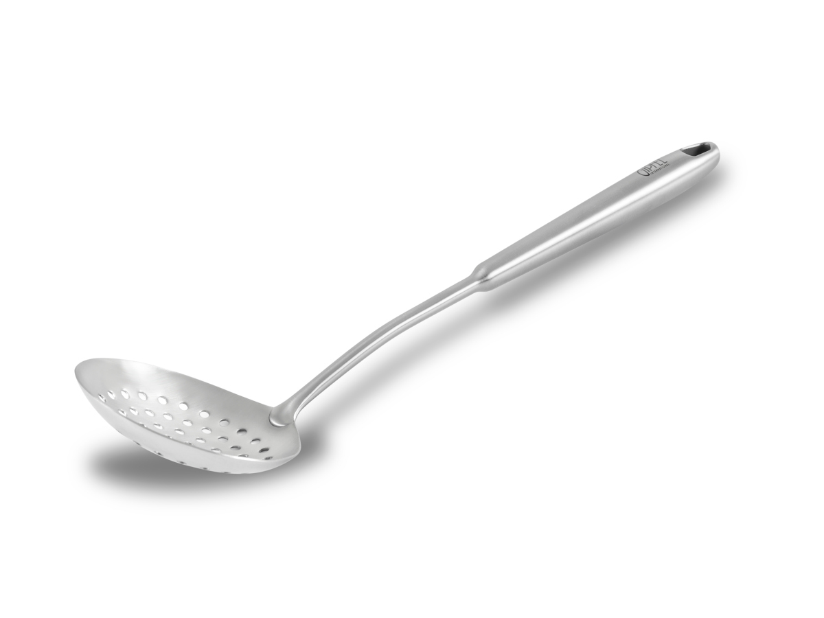 Нержавеющие шумовки отличаются исполнением и санитарно-гигиеническими свойствами. Модель Gipfel 2180 Sharm с длинной 40-сантиметровой рукоятью подходит для приготовления бульонов, супов, вареного мяса, овощей, других блюд. Широкая рабочая часть легко захватывает пищу, а прорези позволят лишней жидкости стечь в кастрюлю. Модель сочетается с другими аксессуарами из серии Sharm, поэтому составить комплект по своему усмотрению не составит труда. Утварь подвешивается на рейлинг — для этого на рукояти есть отверстие. Она легко очищается как губкой с мылом, так и в посудомоечной машине. Нержавеющая сталь не впитывает посторонние запахи, не темнеет и не окисляется.