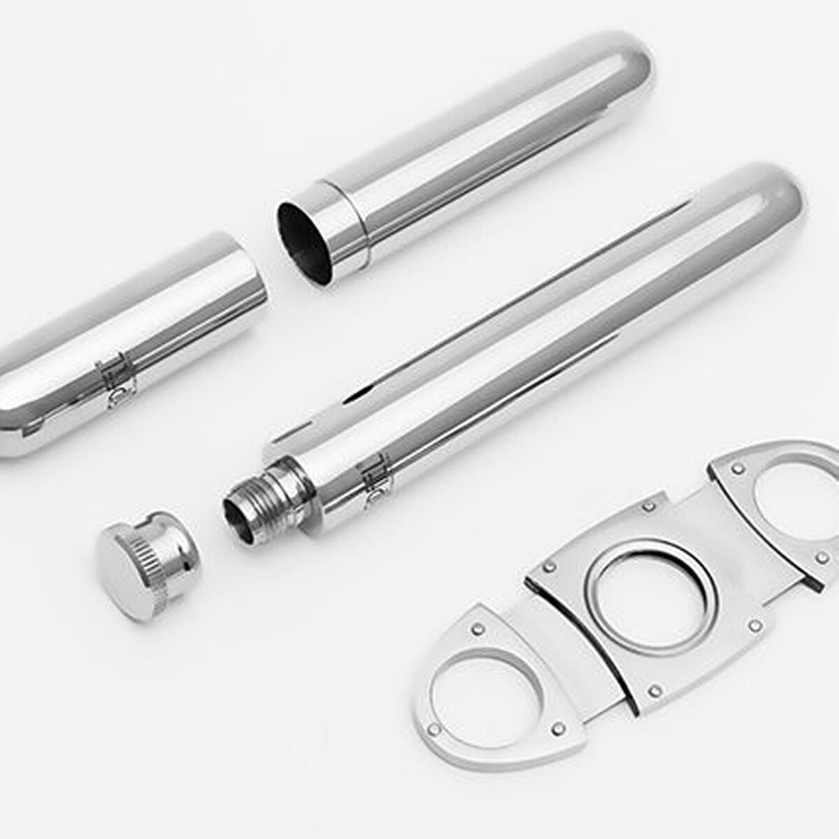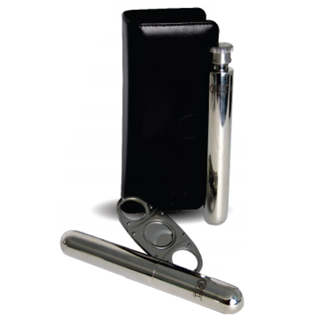 Набор подарочный Gipfel 3763. Набор включает три предмета из нержавеющей стали: гильотину, фляжку, тубус для сигары.