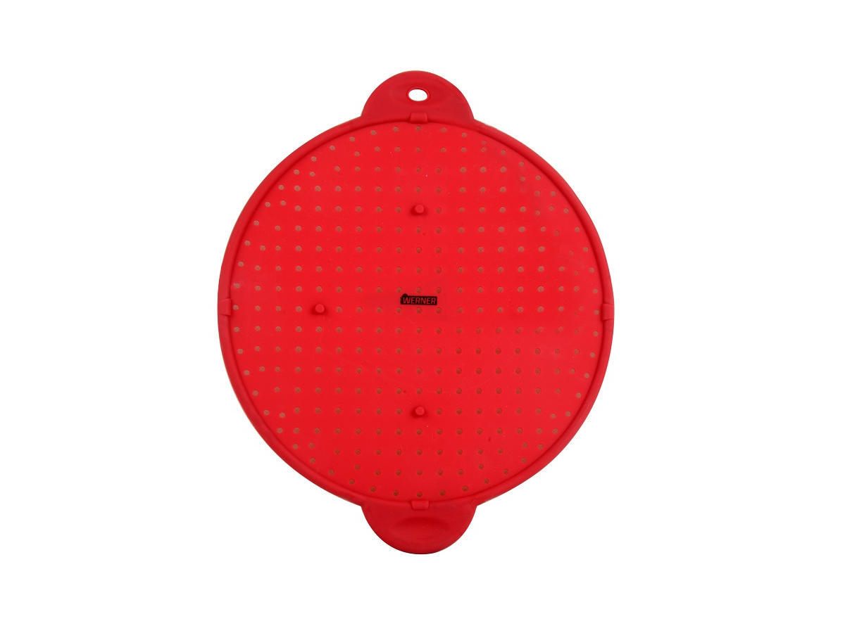 Крышка силиконовая WERNER 1034 для защиты от брызг. Крышка многофункциональная: сито, подставка под горячее, защита от брызг масла. Диаметр 28см. Крышка сделана из силикона, имеет жесткий каркас и ручки с двух сторон.
