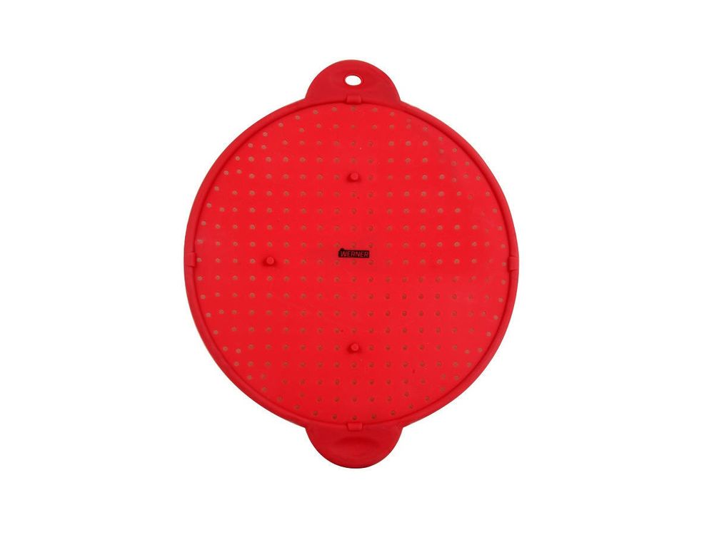 Крышка силиконовая Werner 1034 для защиты от брызг. Крышка многофункциональная: сито, подставка под горячее, защита от брызг масла. Диаметр 28 см. Крышка сделана из силикона, имеет жесткий каркас и ручки с двух сторон.