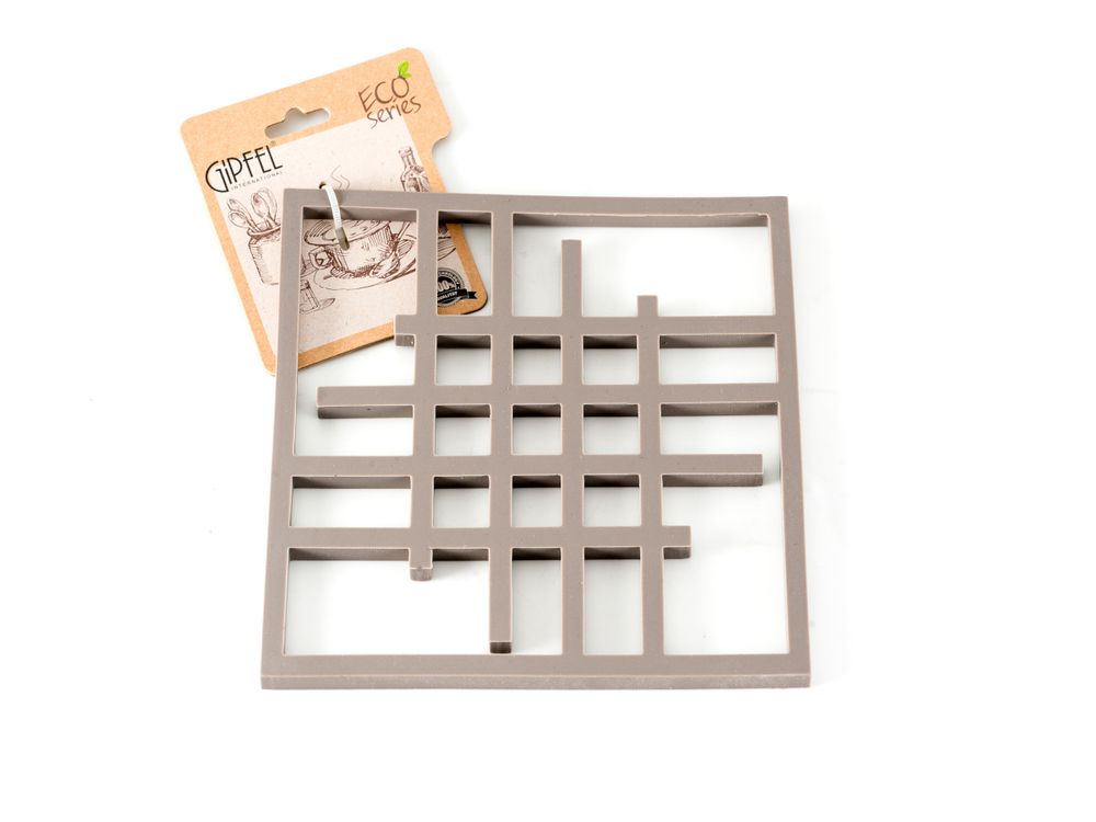 Подставка под горячее Gipfel ECO 0201. Размер 15,7х15,7х0,7 см. Подставка изготовлена из серого силикона в виде пересекающихся линий.