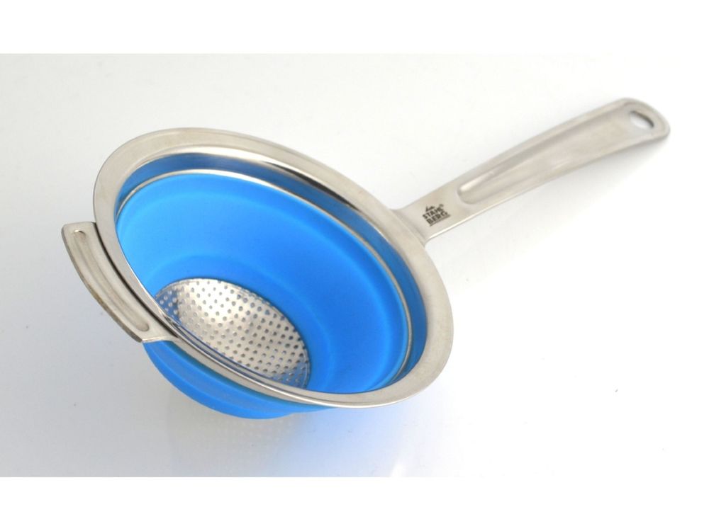 Силиконовый дуршлаг Stahlberg 2607-S. Дуршлаг со складным силиконовым ситом диаметром 10 см. Длина с ручкой 23,5 см. Ручка и обод сделаны из нержавеющей стали. Благодаря стальному ушку дуршлаг можно поместить на кастрюлю или миску, тогда не придется держать его в руке, и можно будет свободно поместить в него продукты. Нержавеющая сталь и силикон позволяют использовать его для слива горячей воды. Силиконовая складывающаяся часть облегчает хранение.