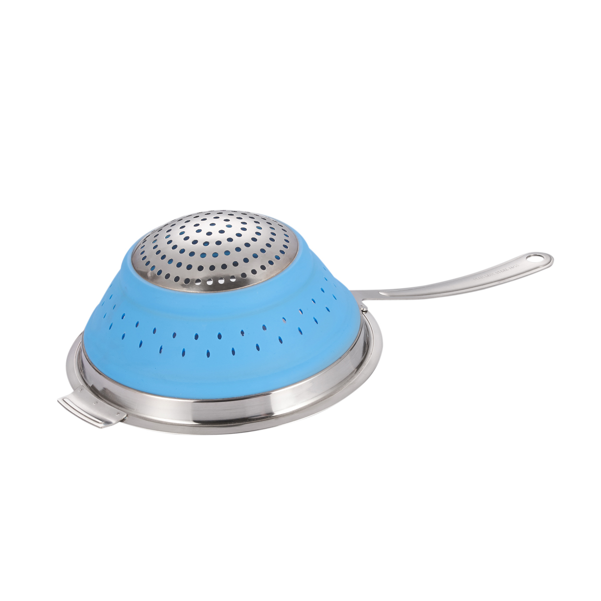 Силиконовый дуршлаг Stahlberg 2609-S. Дуршлаг со складным силиконовым ситом диаметром 20 см. Длина с ручкой 38 см. Ручка и обод сделаны из нержавеющей стали.