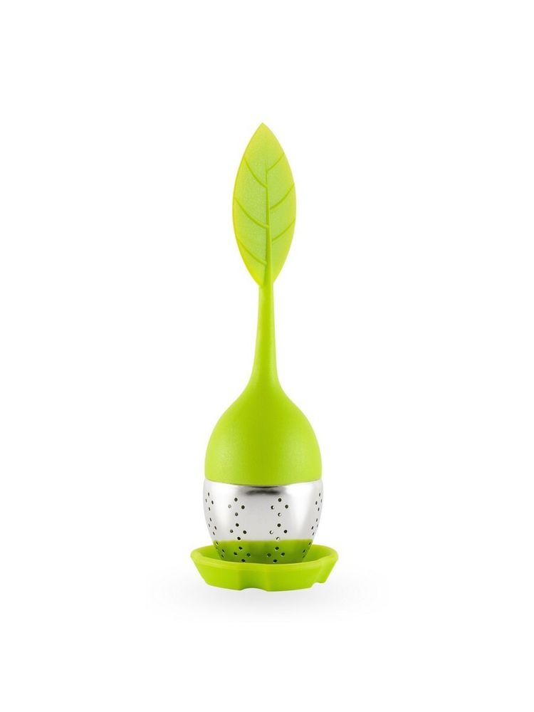 Ситечко для чая Gipfel Axudar 9915. Размер ситечка 15х4х4,4 см. Емкость для чая сделана из нержавеющей стали 18/10, а ручка в виде чайного листочка - из силикона. Листок очень эффектно смотрится, возвышаясь над чашкой. Ситечко удобно вынимать из заваренного чая и помещать на подставку.