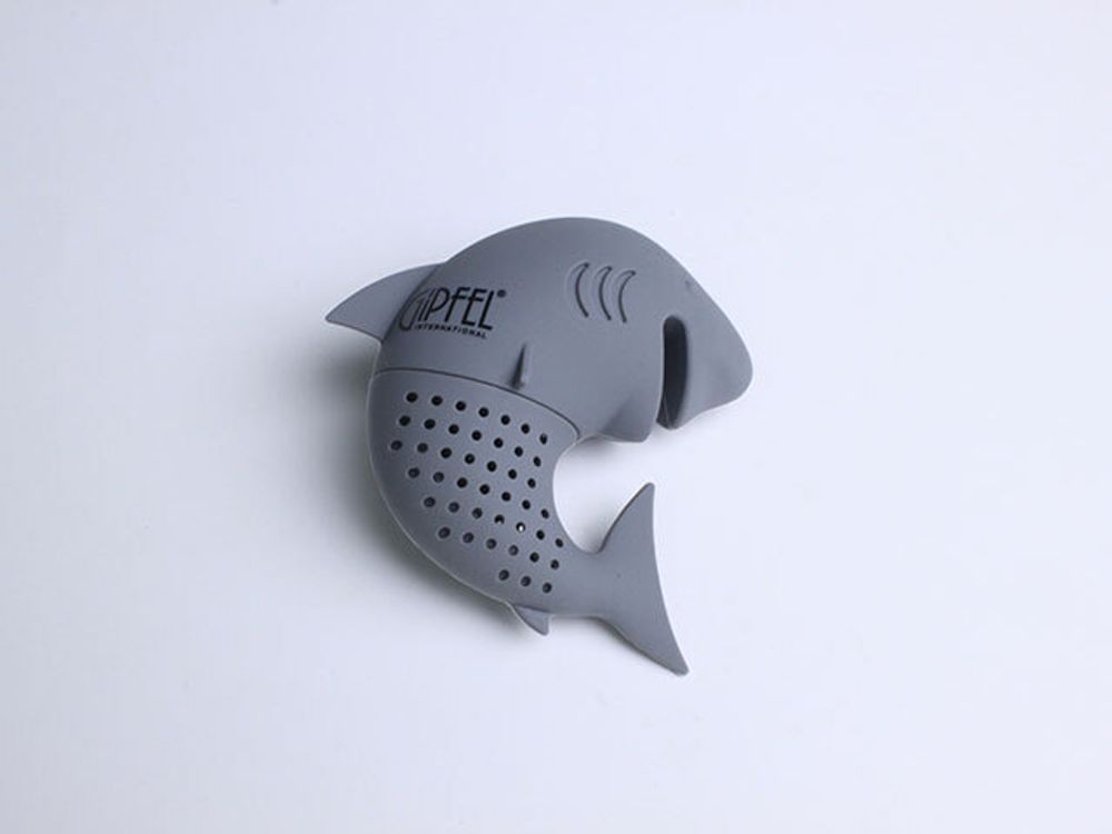 Ситечко для чая Gipfel Shark 5754. Размер 9,5х4х3 см. Ситечко сделано в виде акулы из серого силикона. Акулу можно зацепить за край чашки, опустив ее хвост с заваркой в кипяток. Она очень эффектно смотрится, возвышаясь над чашкой.