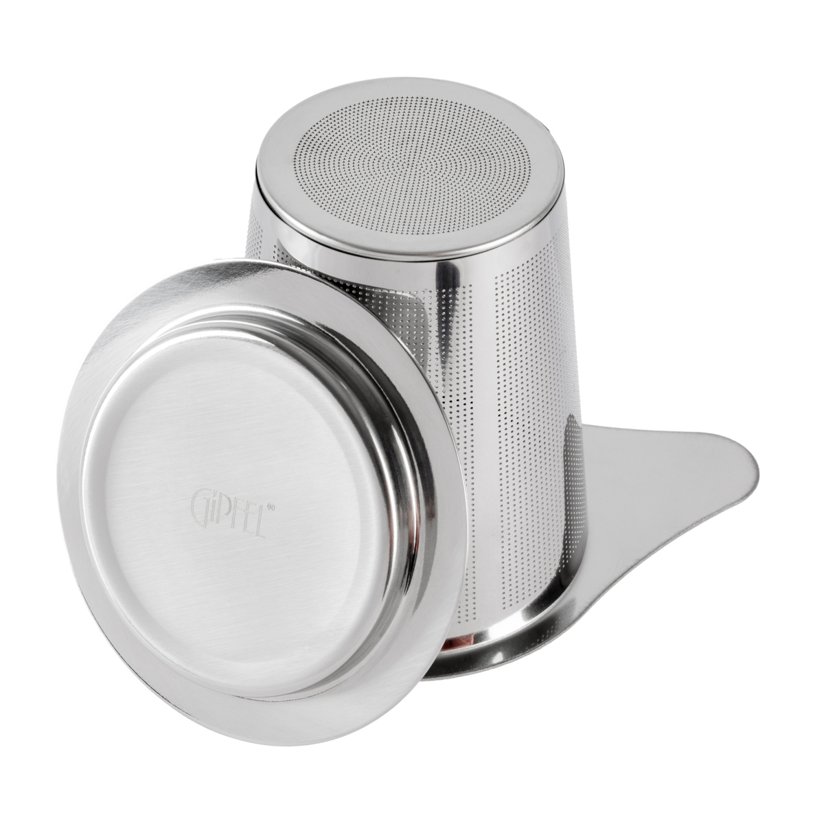 Ситечко для заваривания чая с подставкой Gipfel 51117. Ситечко сделано из нержавеющей стали 18/10. Благодаря меленьким дырочкам есть возможность заваривать даже мелколистовой и гранулированный чай. Ситечко придется по вкусу тем, кто любит заваривать свежий чай прямо в чашке. Оно также удобно тем, что позволяет контролировать крепость заварки.