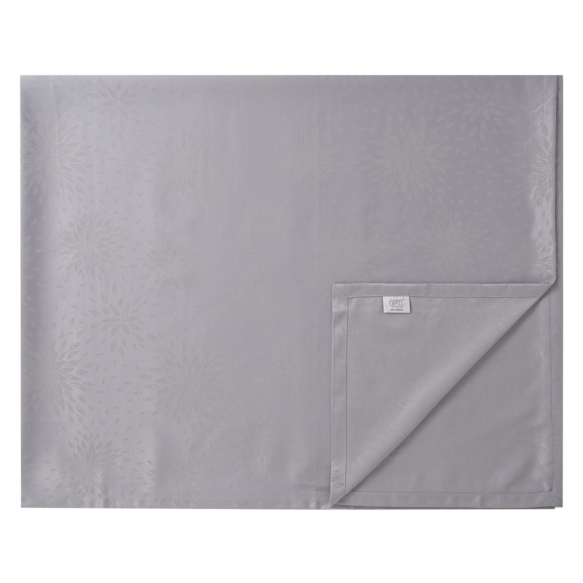 Скатерть выполнена в благородном сером цвете с растительным орнаментом и с атласным блеском. Подойдет как для повседневной сервировки, так и для праздника. Скатерть на столе всегда добавляет уют и торжественность даже обычному буднему ужину.