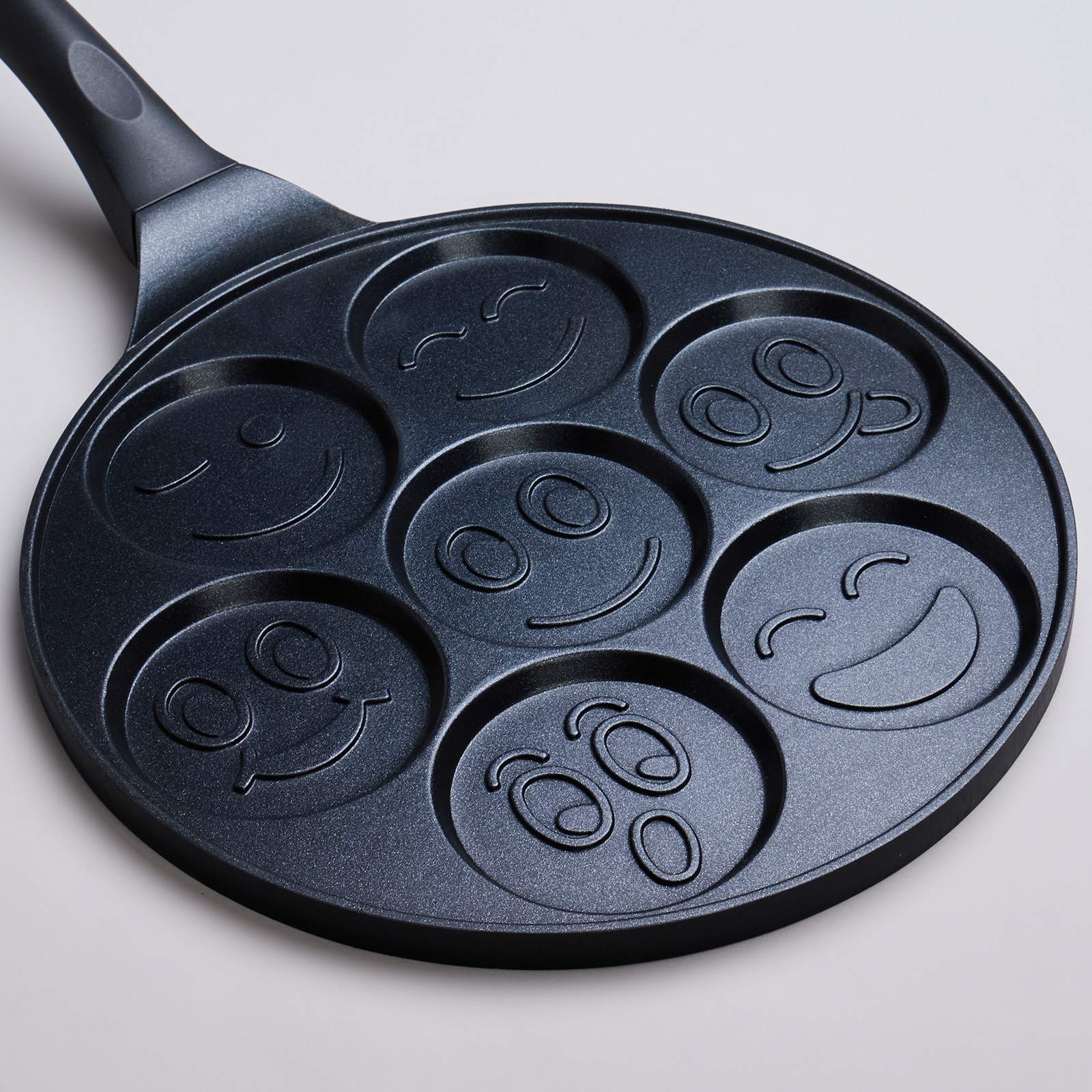 Сковороды AGNESS серии "СМАЙЛ" выполнены из литого алюминия. Такая посуда отличается высокой теплопроводностью и устойчивостью к деформациям. Необычный дизайн сковороды позволит приготовить интересные и веселые оладушки и омлеты.