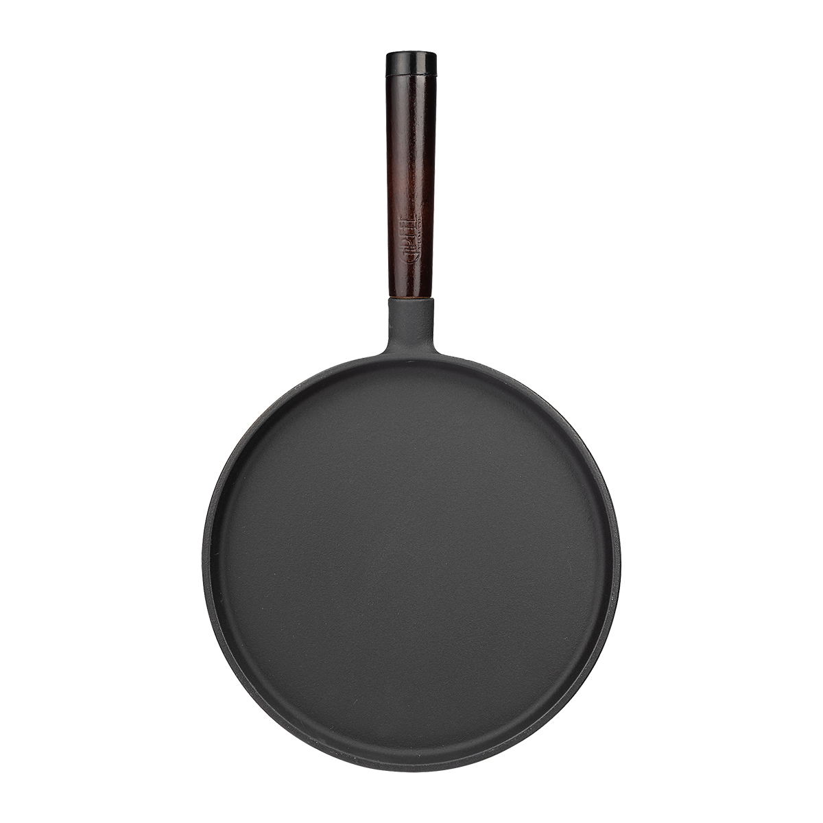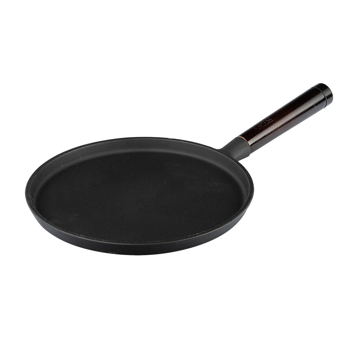 Сковорода блинная Gipfel Amanta 51053. Размер 26x2 см. Сковорода сделана из чугуна, имеет деревянную ручку.