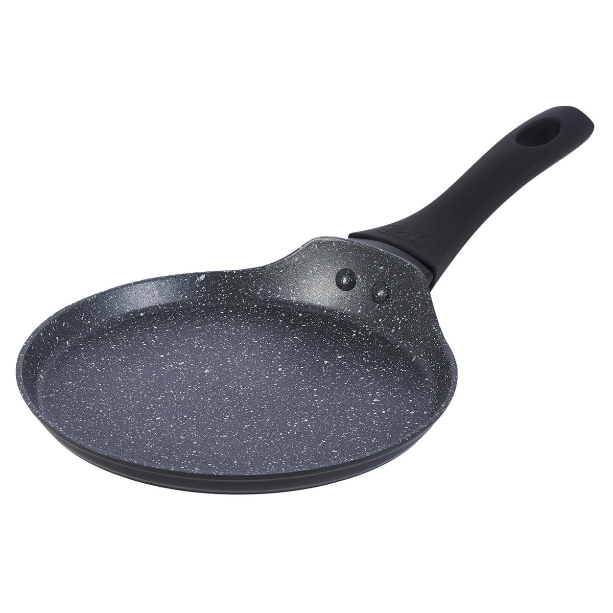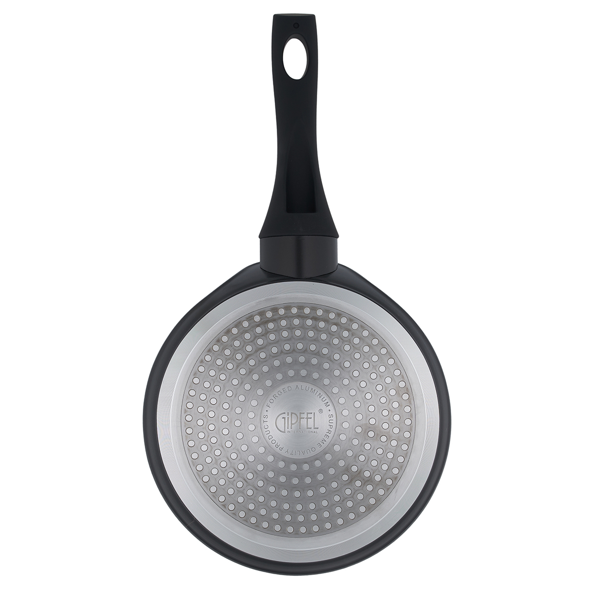 Сковорода блинная Gipfel Ambassador 52788 20 см из кованого алюминия, с антипригарным покрытием Xylan plus, с бакелитовой ручкой с покрытием Soft-touch, с индукционным дном 16 см. Толщина: 2,0/2,5 мм. Цвет: черный.