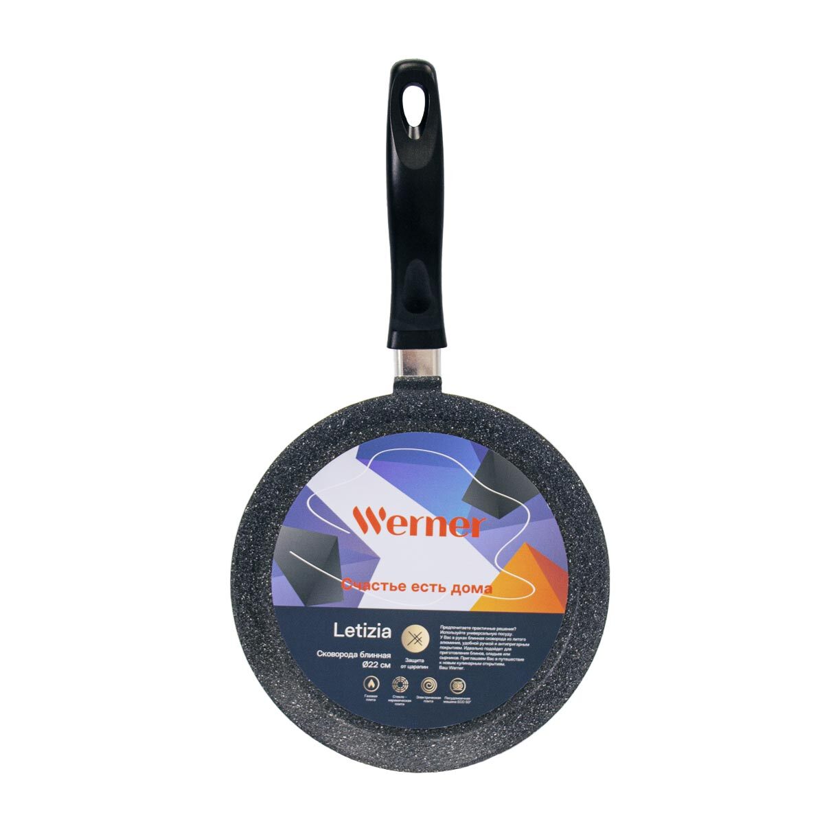 Сковорода Werner Letizia 51675 станет вашим незаменимым помощником при жарке блинов. Благодаря невысоким бортикам 2,5 см, модель может одинаково успешно использоваться как для жарки оладий, так и для приготовления блинов. Поскольку данная сковорода с антипригарным покрытием, они не будут пригорать при жарке даже на сильном огне.