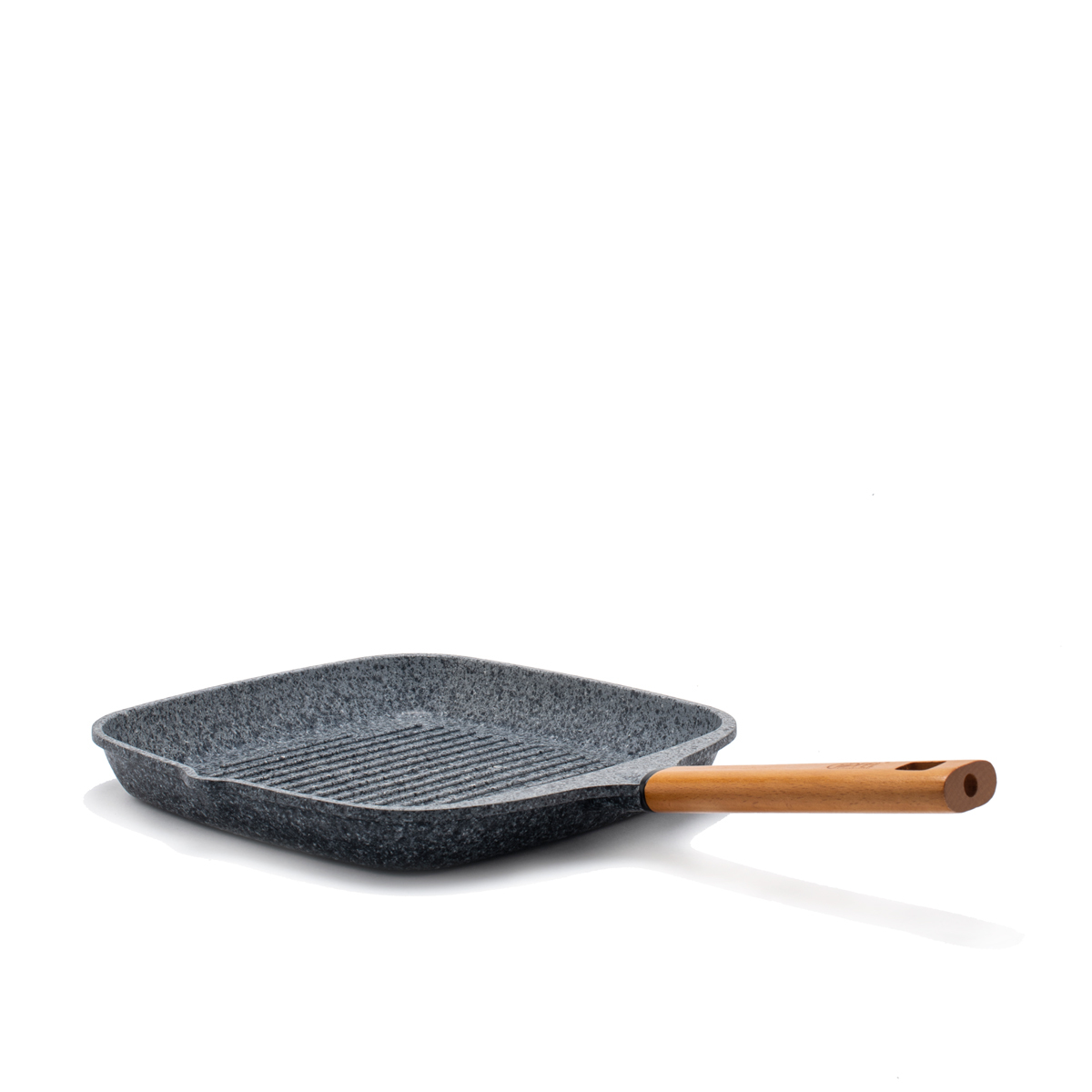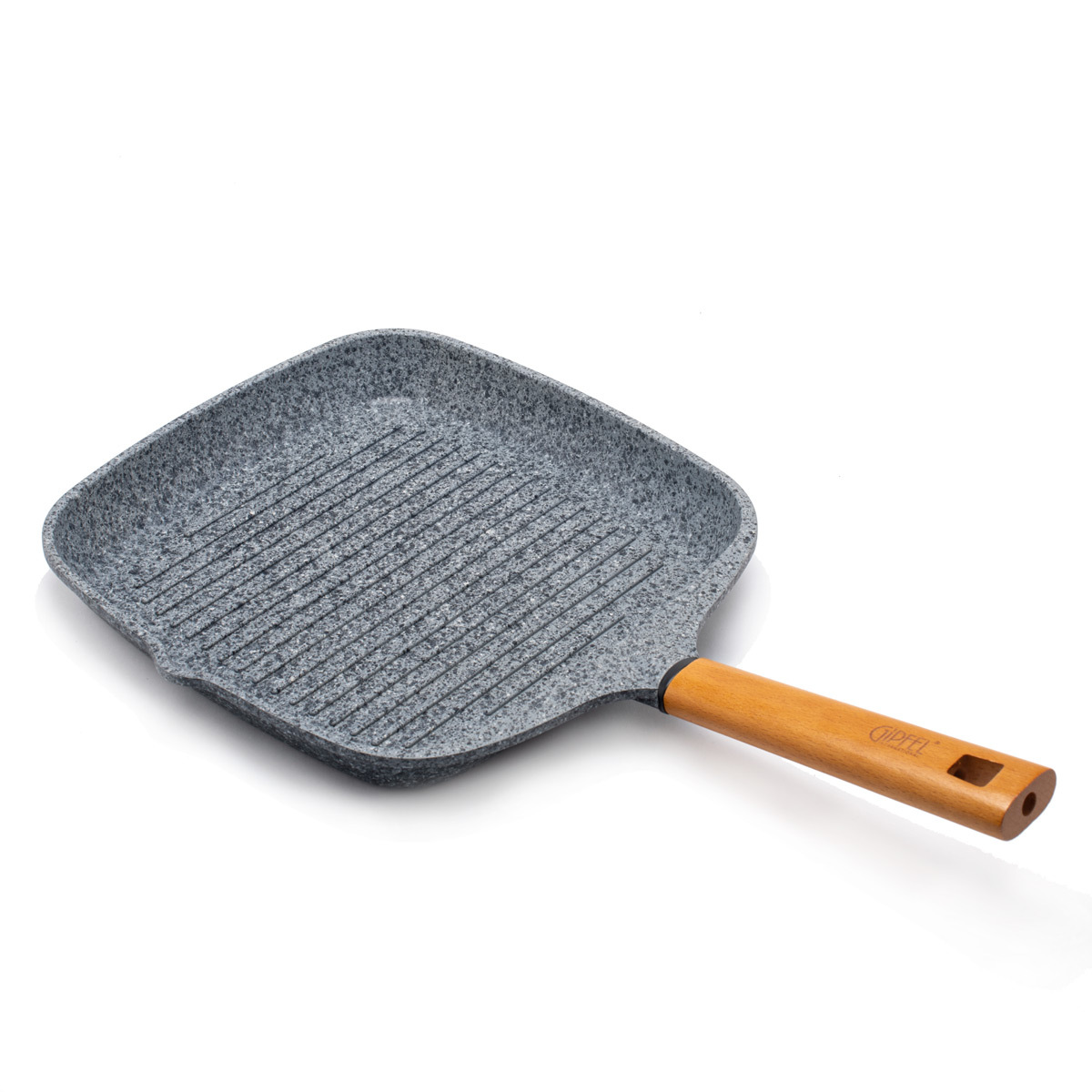 0783 Gipfel Сковорода-гриль NATUREL 28х28х4 см из литого алюминия с деревянной ручкой с премиальным антиприграным мраморным покрытием Pfluon и индукционным дном. Толщина 2,3/5.0 мм. Материал: литой алюминий, натуральное дерево