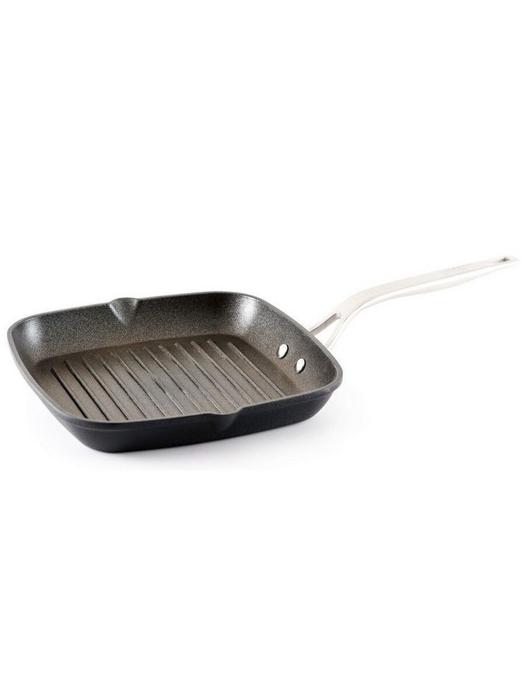 PROFILE – серия классических сковород с довольно толстым дном 5 мм. На корпус посуды из алюминиевого сплава нанесено антипригарное покрытие Teflon Profile, отличающееся повышенной устойчивостью к царапинам. Посуду можно использовать как в духовке, так и на индукционных плитах, размер данной сковороды-гриль составляет 26*26*4 см.