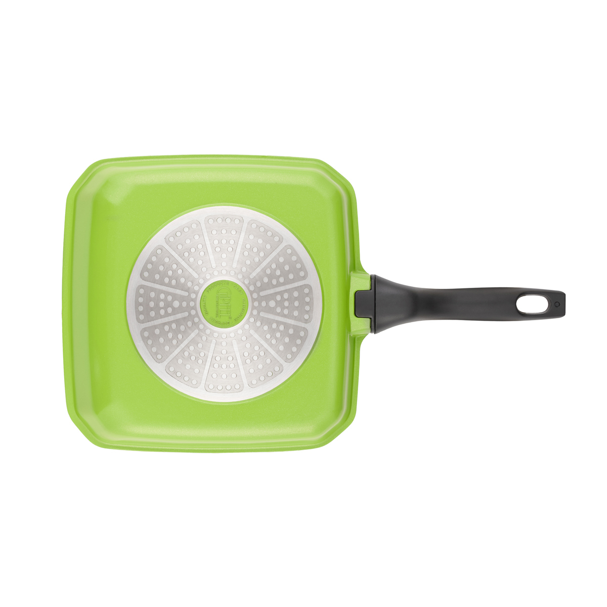 Сковорода-гриль SHAFRAN 26х26х4,6 см со съемной ручкой, индукционное дно. Цвет: внутри черный, снаружи зеленый.