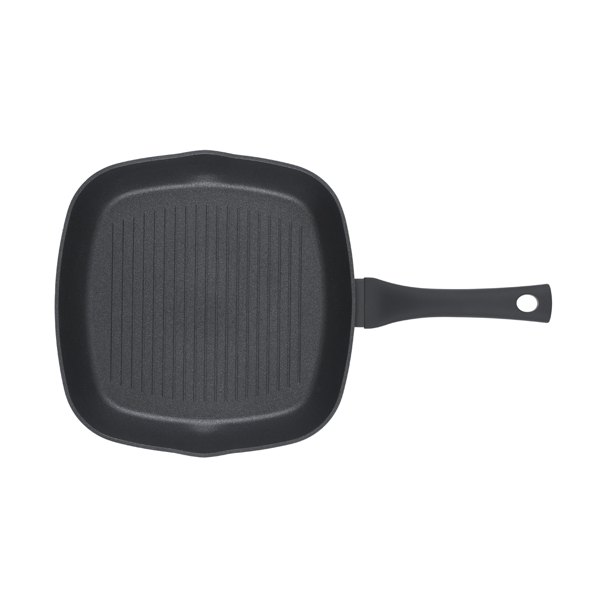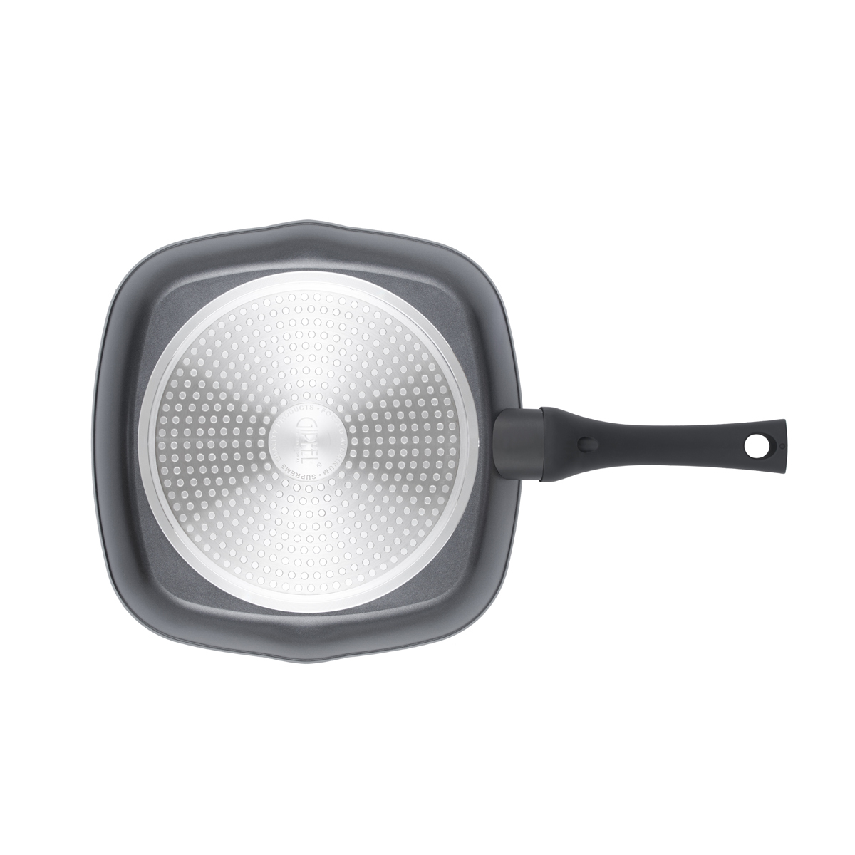 Сковорода-гриль GIPFEL DENVER 51067 28х28см. Сковорода выполнена из кованого алюминия с антипригарным покрытием Pfluon Premium. Бакелитовая ручка с покрытием Soft Touch приятна на ощупь и удобна для руки любого размера. Сковорода отличается хорошей теплоемкостью благодаря стенкам толщиной 2,5 мм. Сковорода имеет толстое дно 3,5 мм, хорошо нагревается и держит тепло, что важно при приготовлении стейков.