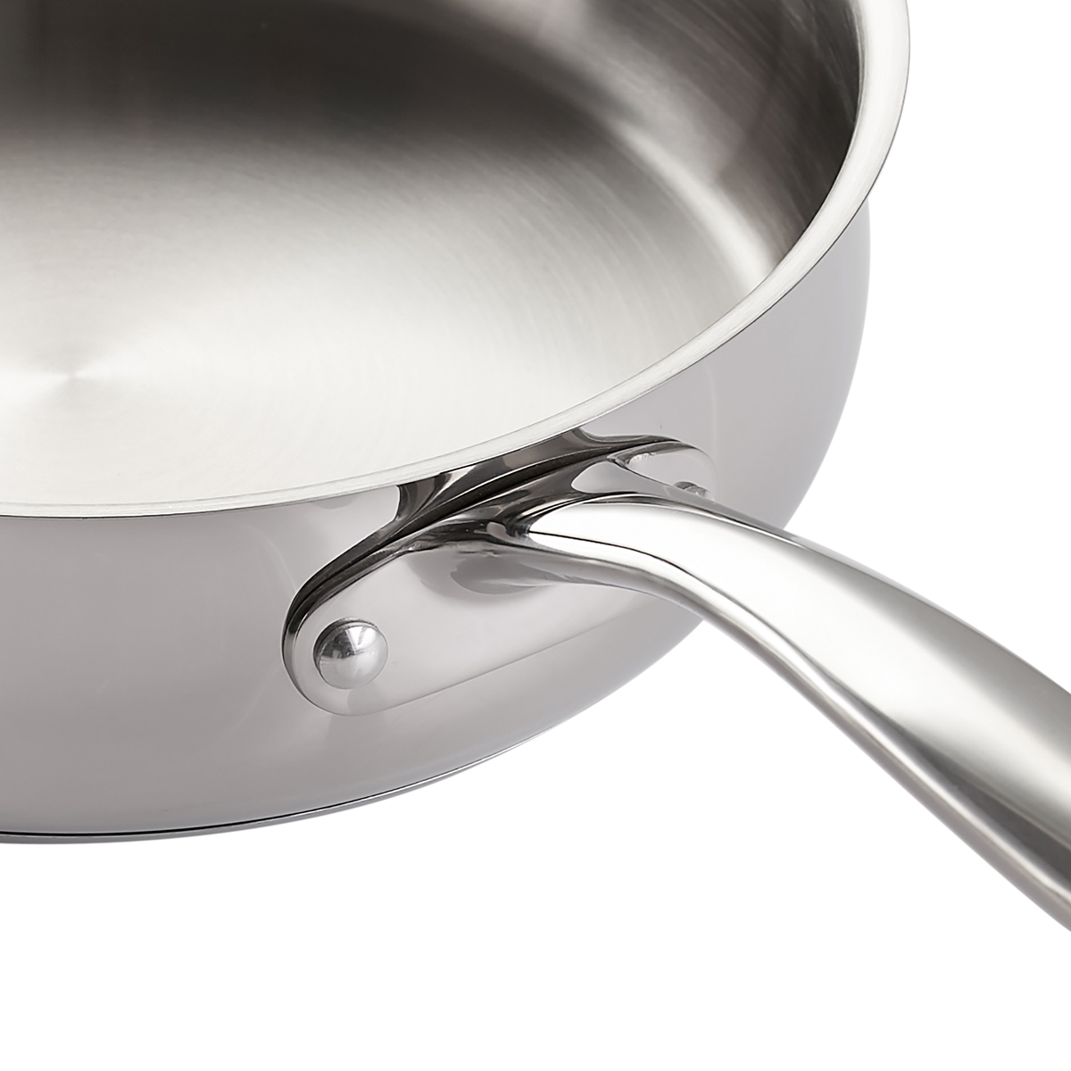 Сковорода выполнена из нержавеющей стали — материала, сохраняющего первозданный вид на протяжении долгого времени интенсивной эксплуатации. Контактирует с пищевыми продуктами, не вступая с ними в реакцию и не окисляясь.