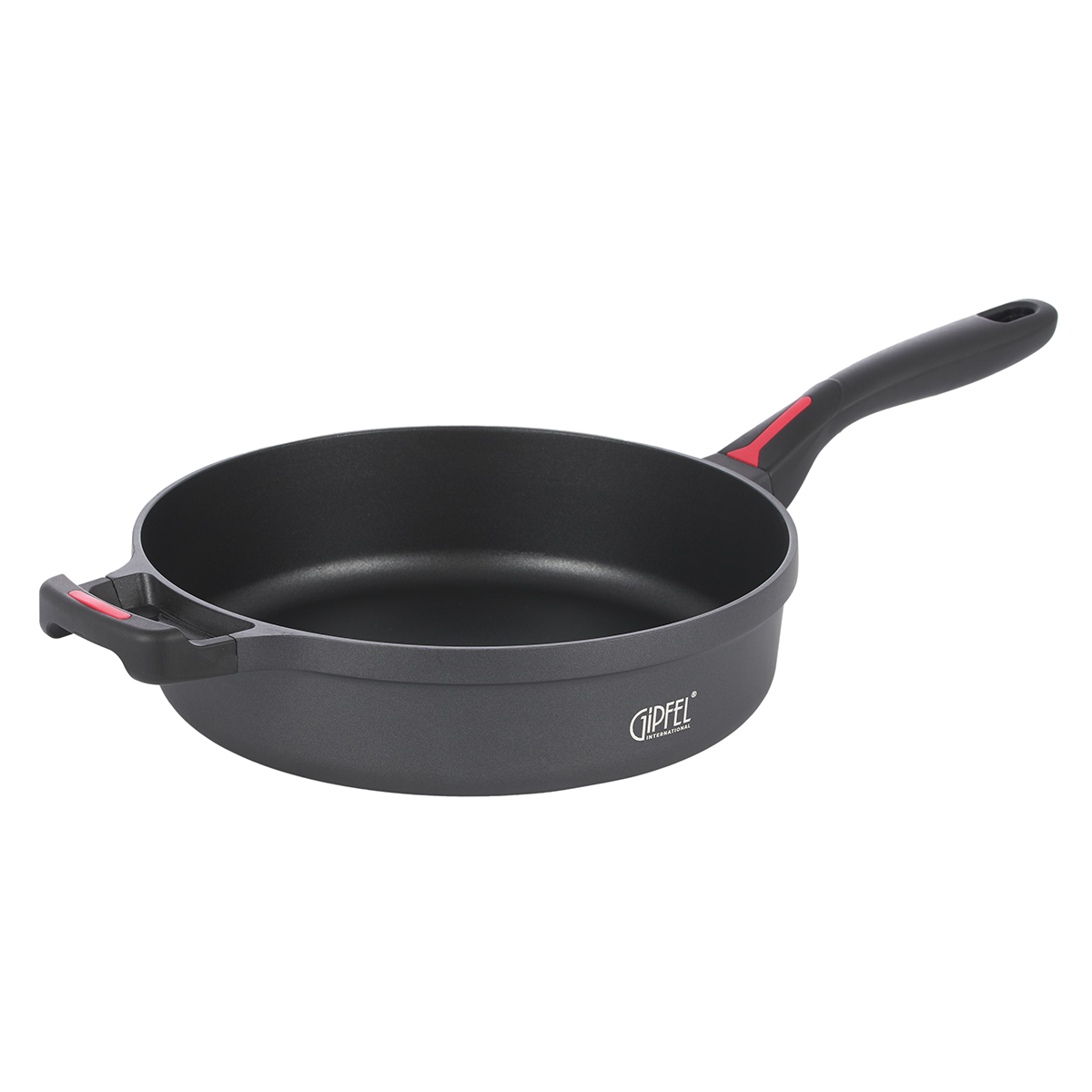 Сковорода-сотейник Gipfel Gourmet 52343 размером 28x7.5 см, объемом 3,5 л изготовлена из литого алюминия, что позволяет ей равномерно нагреваться и распределять тепло. Толщина стенок 1,8 мм, толщина дна 5,5 мм.
