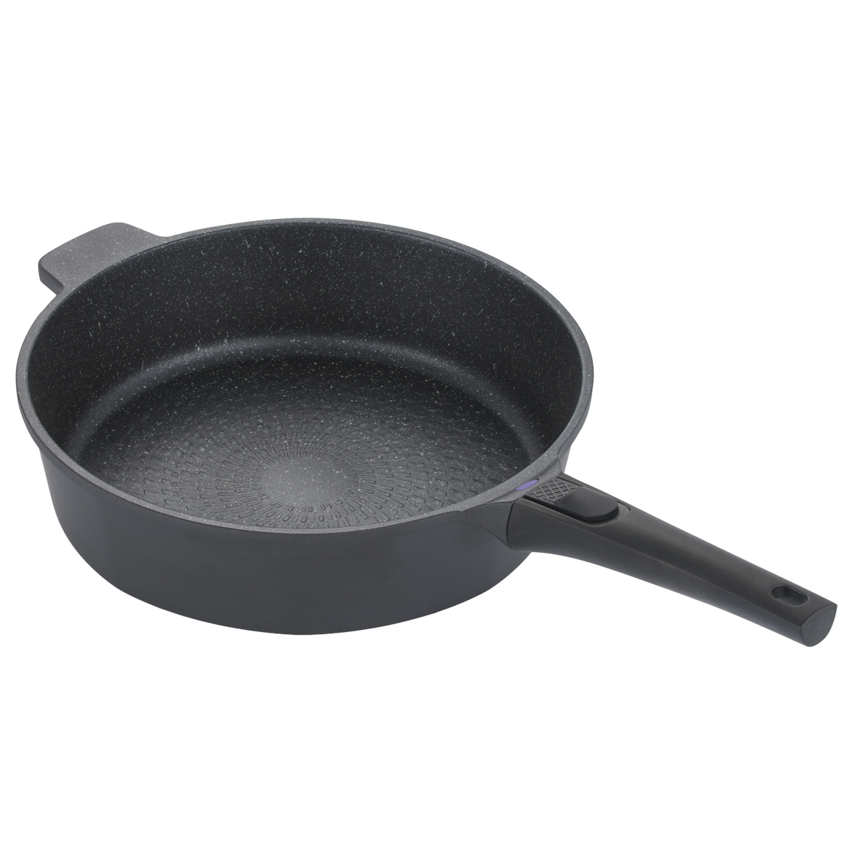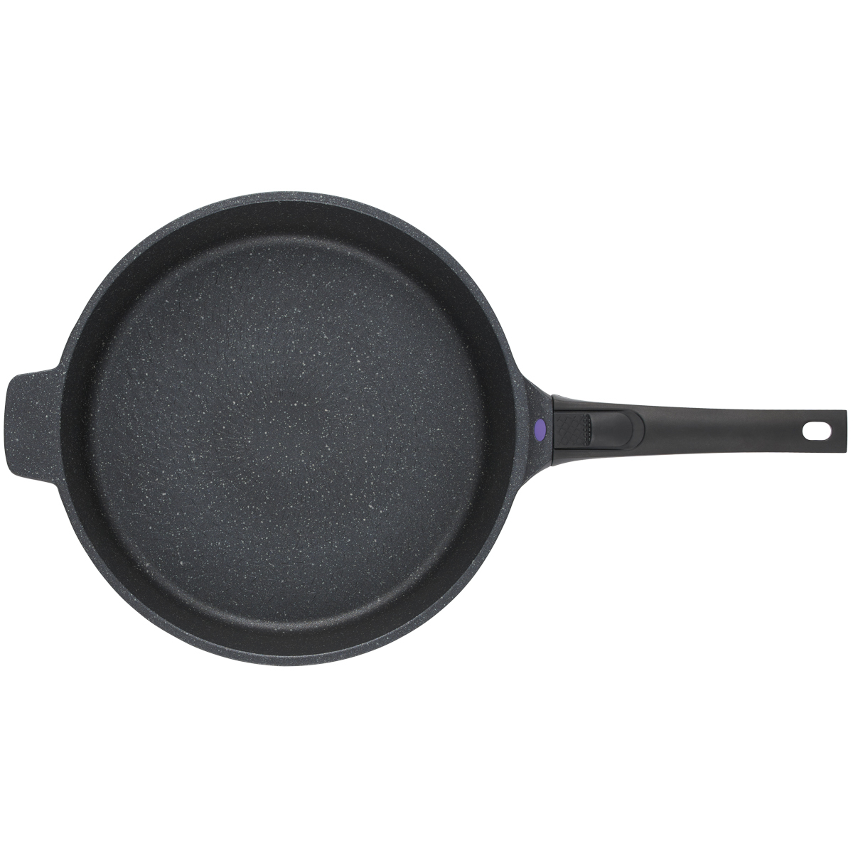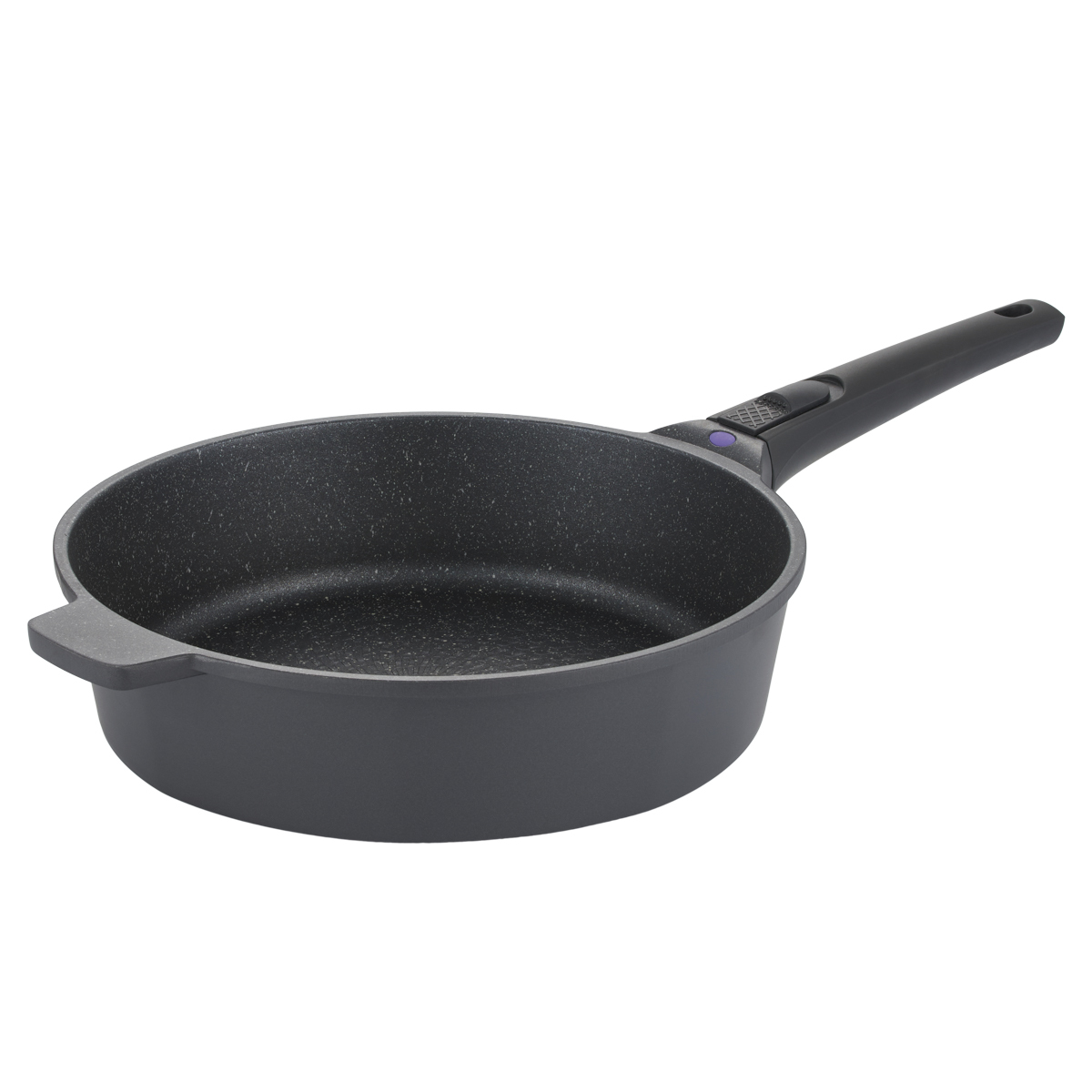 Съемная ручка делает ее удобной в хранении. Без ручки и крышки сковорода подойдет для микроволновой печи и духового шкафа. Ручка сковороды и крышки выполнены из бакелита – термостойкого пластика, который не нагревается.
