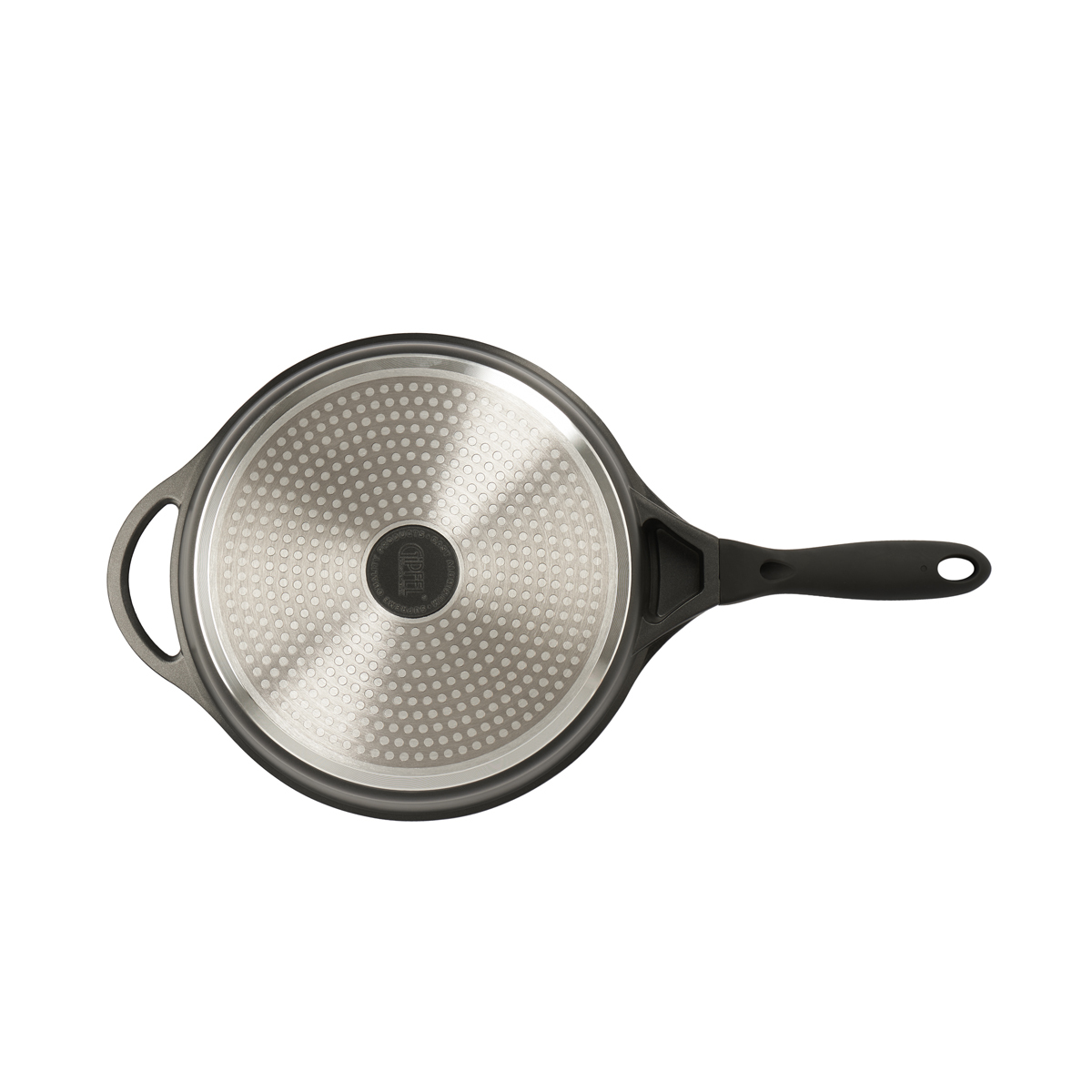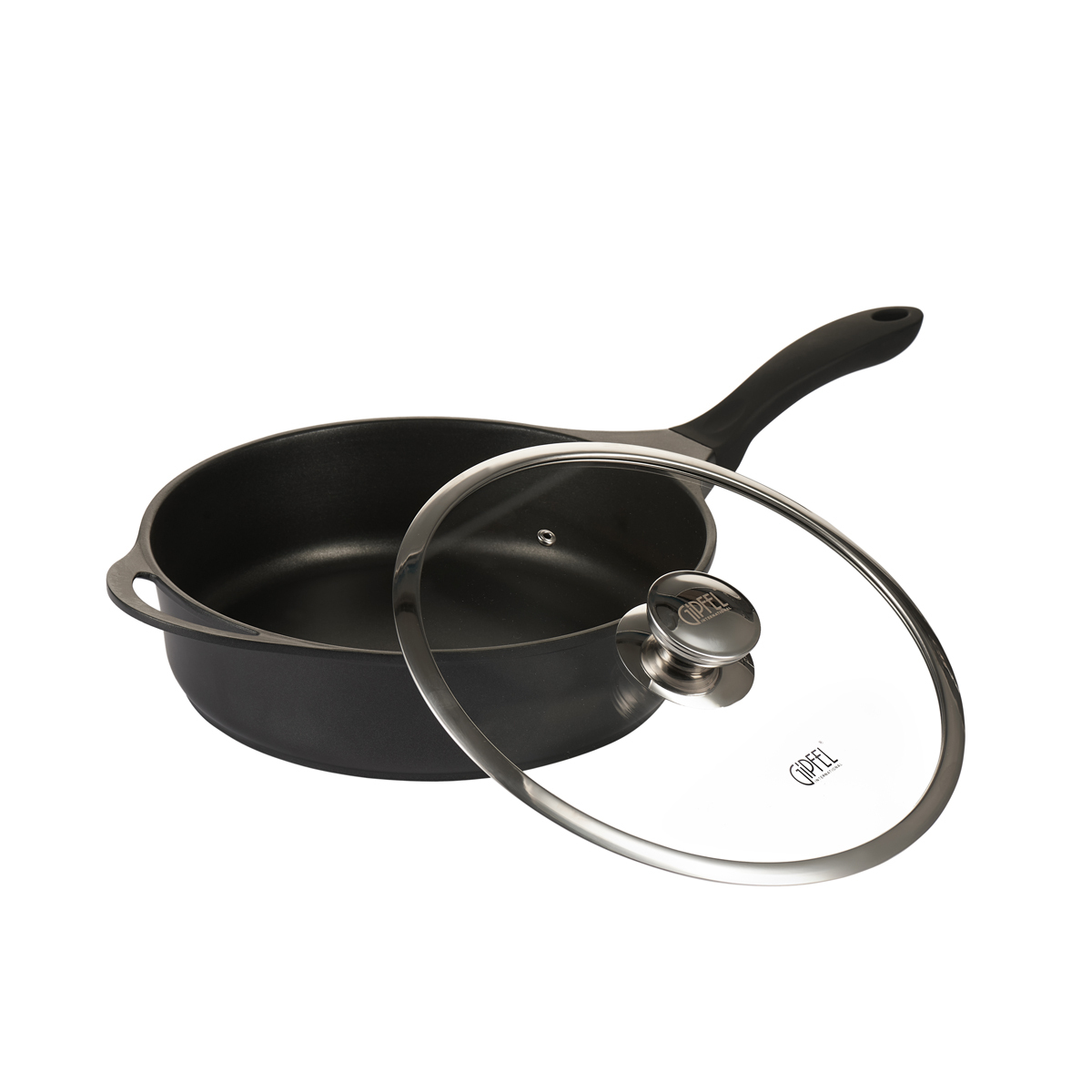 Сковорода-сотейник Gipfel RICHMOND 0145 28х8 см из литого алюминия, со стеклянной крышкой, с индукционным дном, с двуслойным антипригарным покрытием Whitford Xylan plus, с бакелитовой ручкой с покрытием "Soft-touch". Толщина стенок 1,8 мм, толщина дна 5 мм. Цвет: черный. Посуда серии RICHMOND непременно станет незаменимым помощником на вашей кухне. Материал прочен, обладает относительно небольшим весом, неприхотлив в уходе и способен выдерживать даже самые высокие температуры. На внутреннюю часть корпуса нанесено двухслойное антипригарное покрытие, в комплект входит стеклянная крышка.