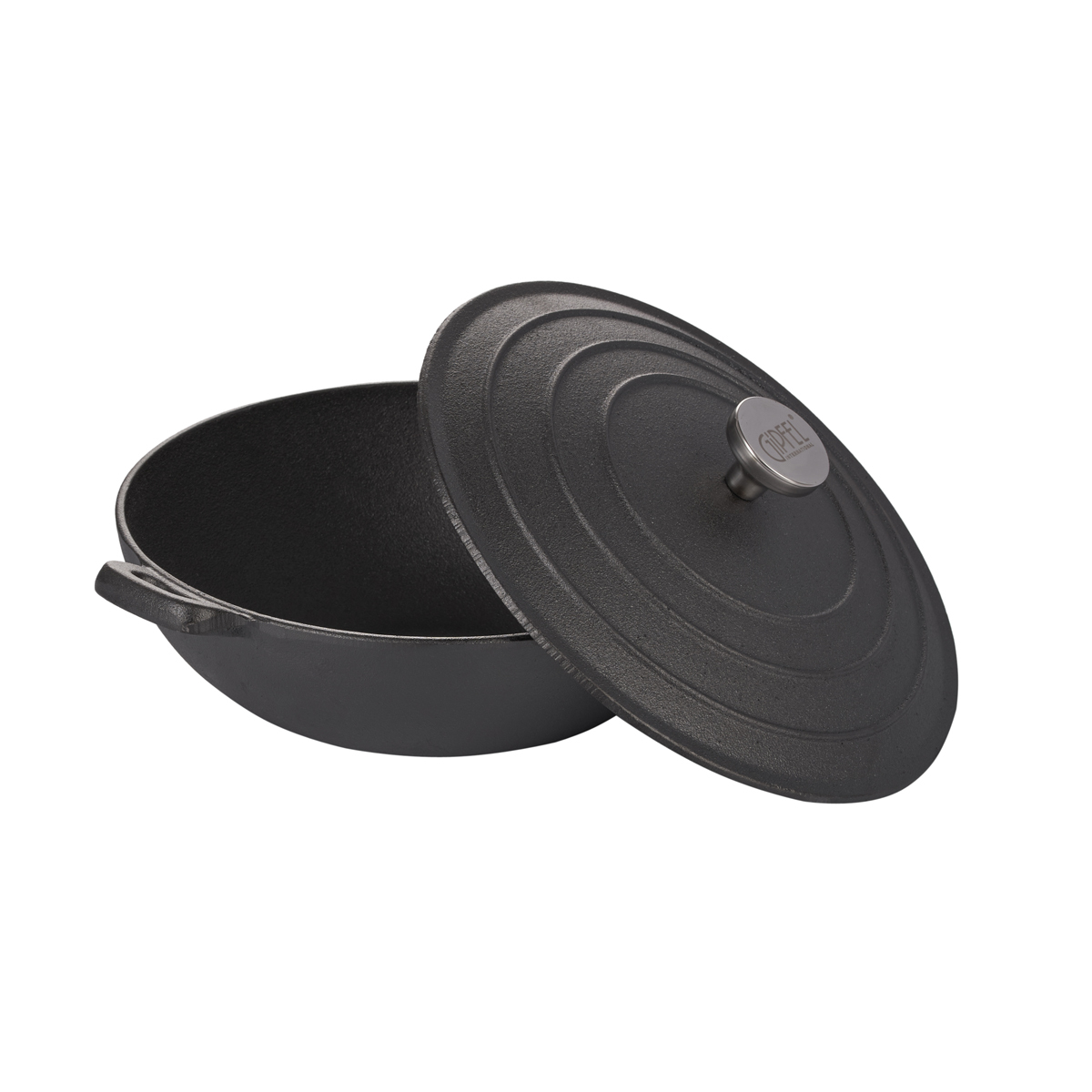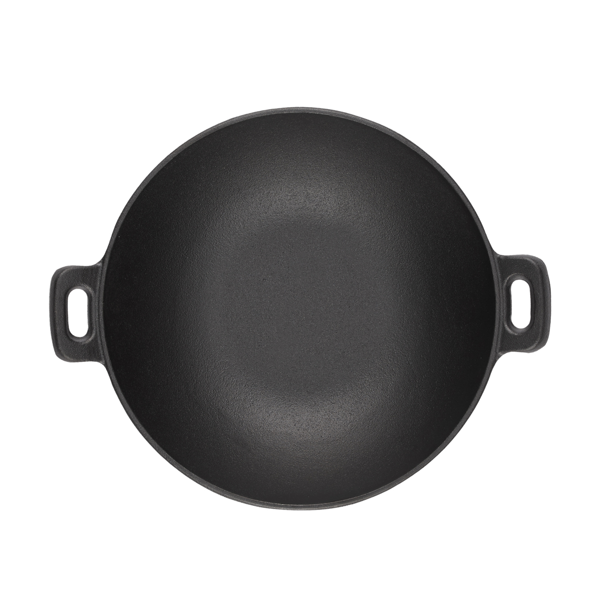 Сковорода-вок DILETTO изготовлена из прочного чугуна. Этому материалу не страшны перекаливания при нагреве. Также чугун обладает высокой теплоемкостью, что позволяет равномерно прогревать продукты. Пористая структура этого материала постепенно пропитывается маслом, что обеспечивает естественные антипригарные свойства.