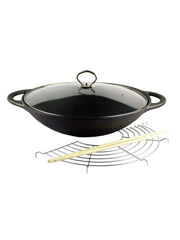 Сковорода-вок Gipfel DYNASTY 36 см со стеклянной крышкой из чугуна без покрытия. Сковорода-вок идеально подходит для приготовления традиционной азиатской пищи - лапши, риса, мяса, овощей и плова. В комплекте деревянные палочки, деревянные щипцы и решетка из нержавеющей стали.