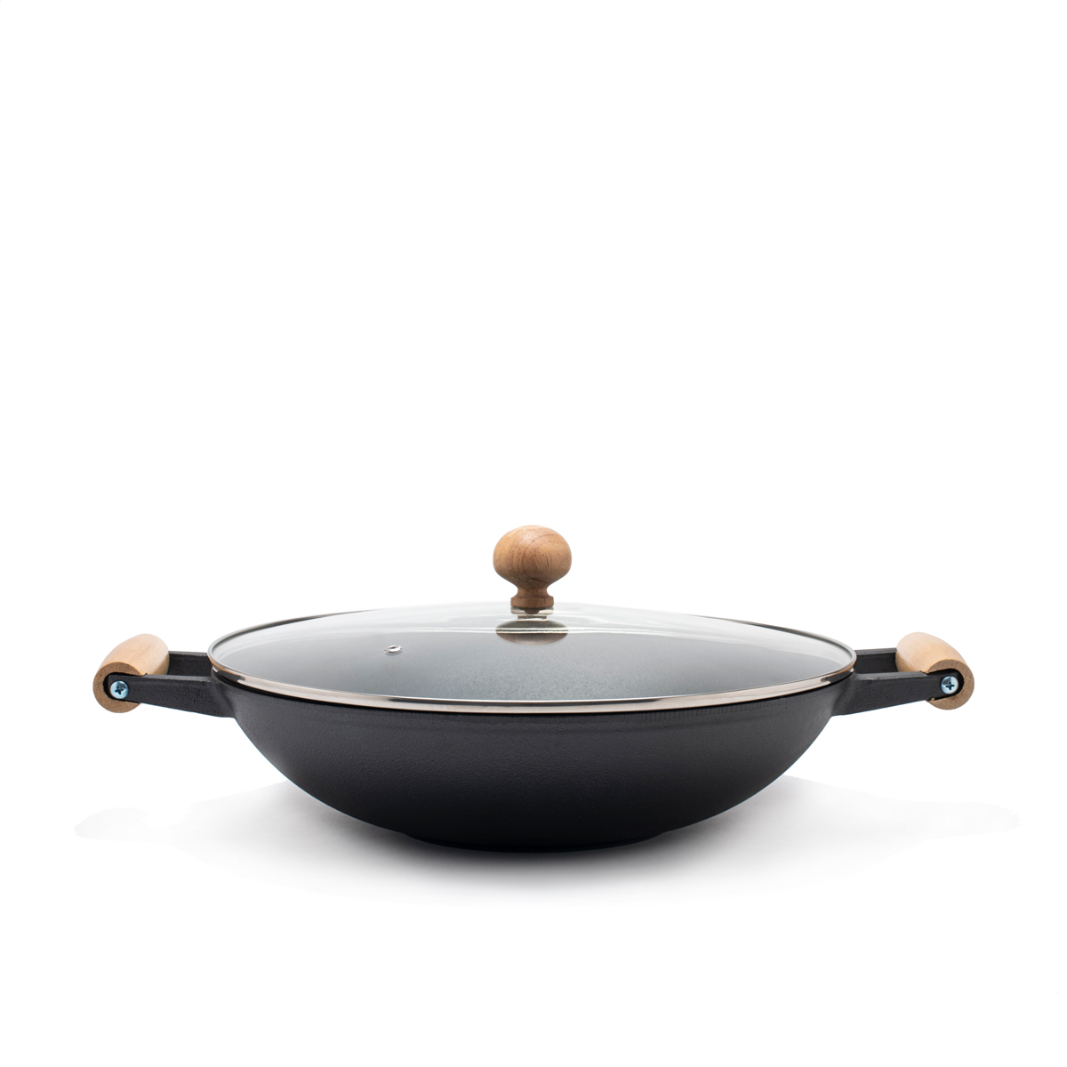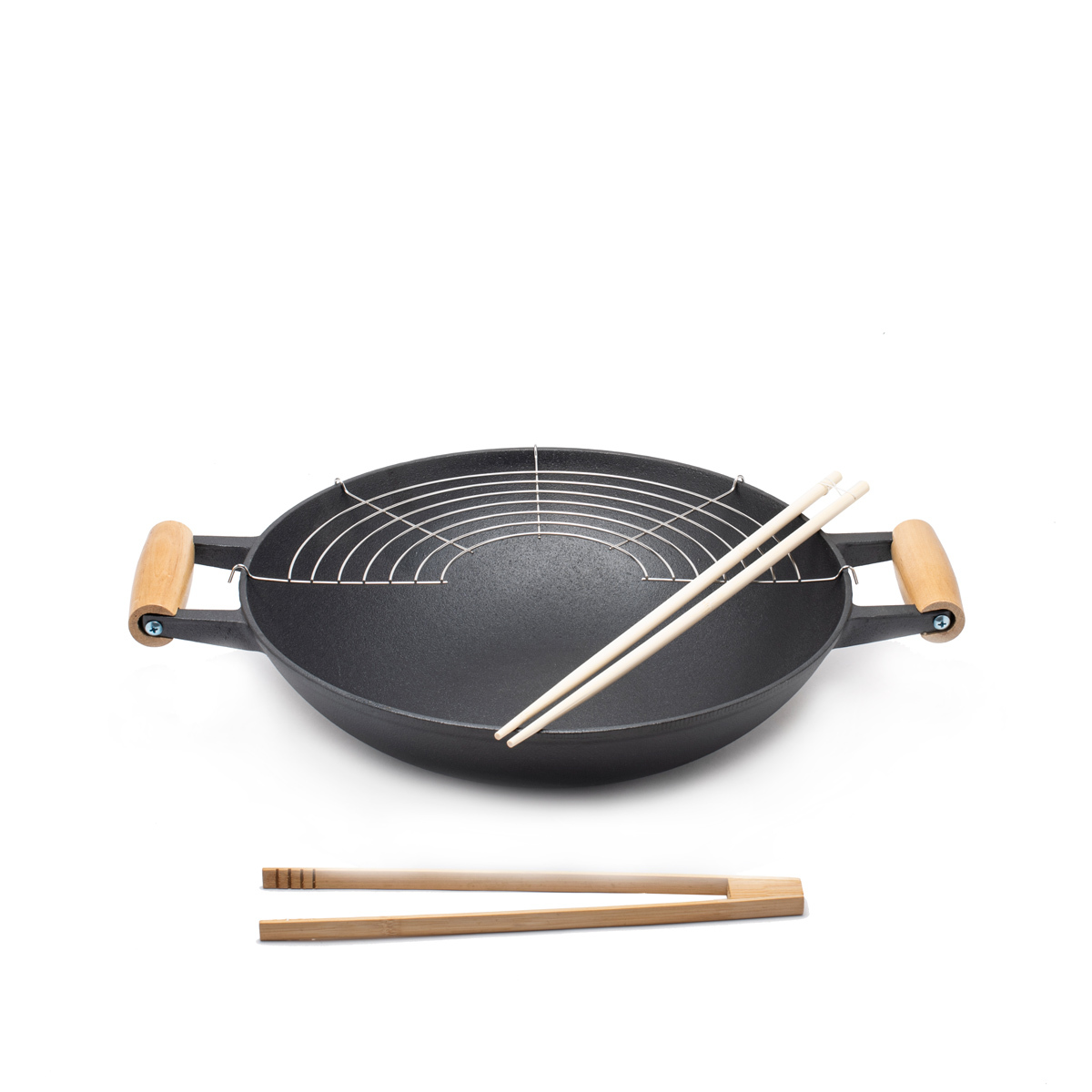 Сковорода-вок GIPFEL SOONG DYNASTY 2154 оснащена двумя деревянными ручками и стеклянной крышкой, также имеющей деревянную ручку. Диаметр сковороды-вок составляет 37 см, а высота - 9,5 см. Диаметр дна 15,5 см. Корпус изделия выполнен из чугуна. В комплекте идет стальная решетка. Сковороду не рекомендуется мыть в ПММ.