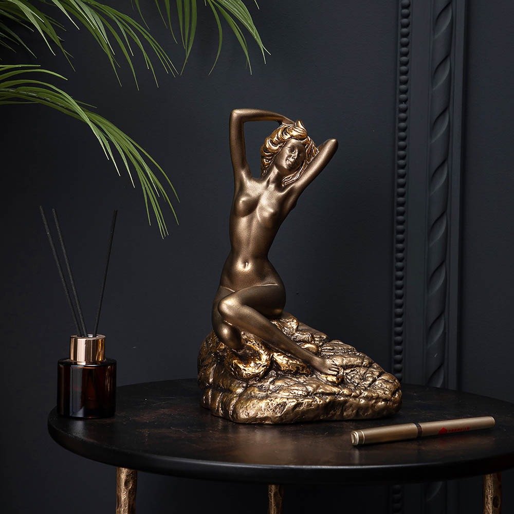 Элегантная бронзовая скульптура девушки станет изысканным акцентом в интерьере. Фигура, сидящая на камне, олицетворяет гармонию, красоту и спокойствие, создавая атмосферу уюта и роскоши.